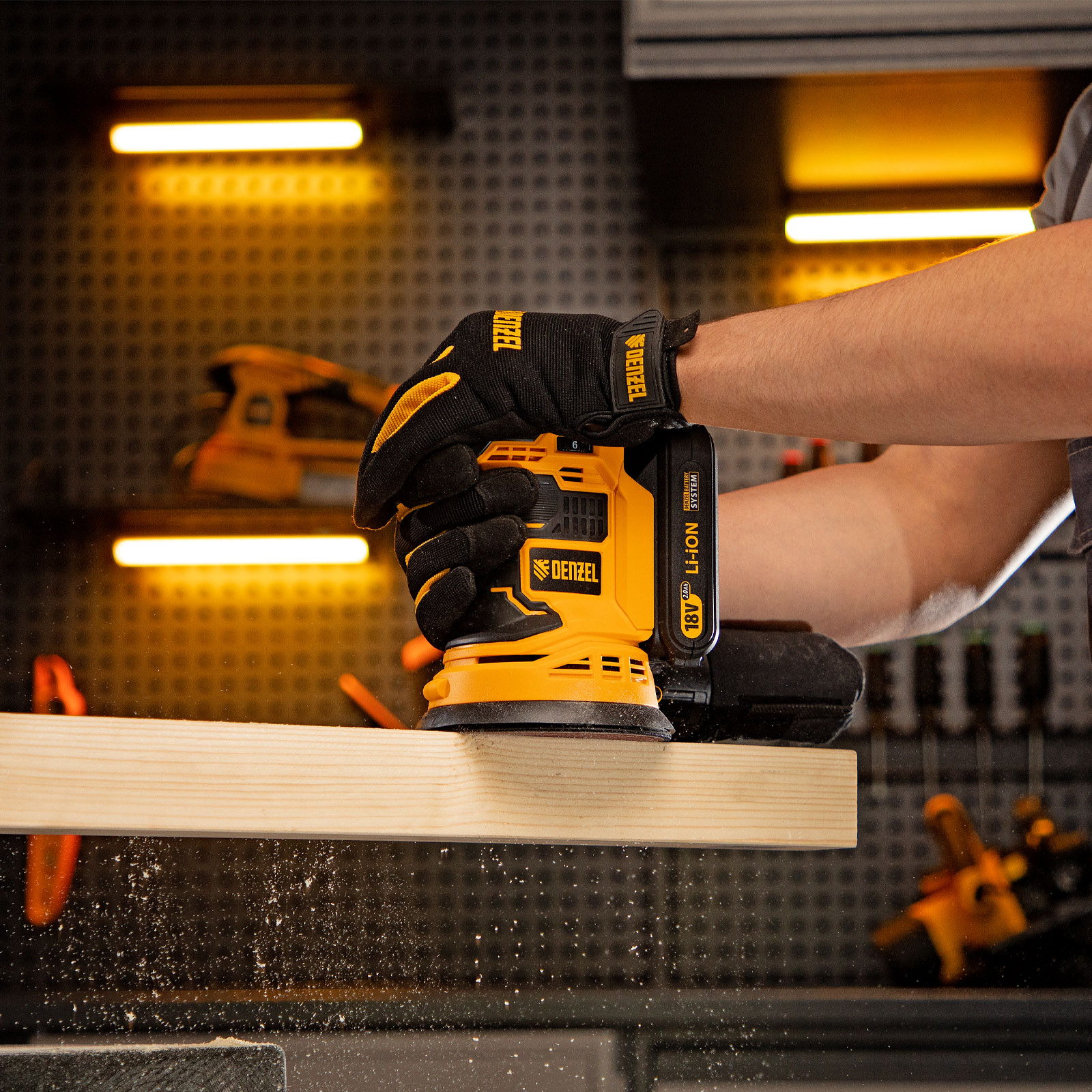 Машина шлифовальная эксцентриковая аккумуляторная COS-125, 18В Li-Ion Denzel в Москве