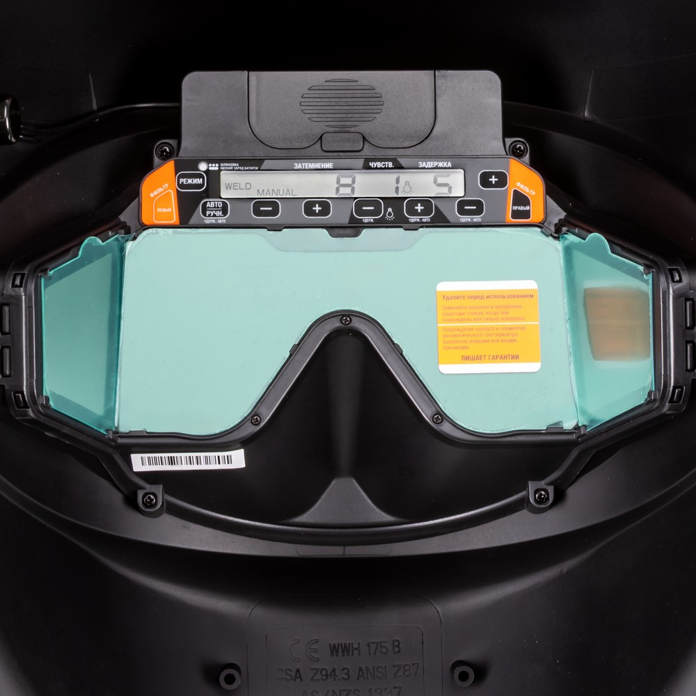 Сварочная маска FC X855 серии Ultimate предназначена для защиты глаз, лица и шеи сварщика от вредного ультрафиолетового излучения, искр и брызг расплавленного металла. Режимы и параметры настраиваются с помощью удобных кнопок на цифровой панели управления светофильтра, а вся необходимая информация отображается на LCD экране. Оптимальный размер смотровой области обеспечивает панорамный обзор на 180 градусов и позволяет видеть окружающее пространство. С внешней стороны на корпусе расположена кнопка переключения режима шлифовки (GRIND).АВТОМАТИЧЕСКАЯ НАСТРОЙКА ЗАТЕМНЕНИЯ: Сварочная маска оборудована синергетическим подбором параметров затемнения. В режиме синергетики система автоматически устанавливает нужные параметры затемнения в зависимости от условий рабочего процесса.7 ОПТИЧЕСКИХ ДАТЧИКОВ: Независимые фотодатчики мгновенно срабатывают при появлении сварочной дуги и поддерживают закрытое состояние светофильтра даже тогда, когда один из датчиков перекрыт каким-либо препятствием. Повышенная чувствительность сенсоров даёт исключительную стабильность обнаружения дуги. Маска оснащена семью независимыми датчиками, что гарантирует срабатывание даже в том случае, если 6 датчиков будут закрыты.ПАНОРАМНЫЙ ОБЗОР: Оптимальный размер смотровой области маски обеспечивает панорамный обзор на 180 градусов, максимальный комфорт, безопасность при работе и позволяет хорошо видеть как область сварки, так и окружающее пространство.УНИКАЛЬНЫЙ МЕХАНИЗМ ДВИЖЕНИЯ: Механизм движения, установленный на оголовье маски, позволяет перемещать щиток в нескольких плоскостях. Это уникальная конструкция механизма движения, которая снижает нагрузку на голову и шею сварщика, а также облегчает работу в ограниченном пространстве.ИНФОРМАТИВНАЯ ПАНЕЛЬ УПРАВЛЕНИЯ: Маска оборудована цифровой панелью управления для удобной настройки светофильтра. На панели расположены органы управления светофильтра и LCD дисплей с индикацией настроек и параметров.ПРЕИМУЩЕСТВА:Цифровая панель управления с LCD дисплеемВнешняя кнопка включения режима GRIND (шлифовка)Чувствительность светофильтра в TIG-сварке меньше 2 амперЛёгкий и прочный материал маски, негорючий и стойкий к излучению сварочной дугиОптимальный размер смотрового окна2 диапазона затемнения7 независимых фотодатчиков4 вида регулировки оголовьяИндикатор заряда батареиТехнология FULL COLORМаксимальная постоянная защита от невидимого УФ/ИК излучения дугиКомбинированное питаниеСоответствие современным стандартам качества DIN, ISO, EN379ФУНКЦИОНАЛЬНЫЕ ОСОБЕННОСТИ:РЕЖИМ GRIND: Режим шлифовки (Grind) даёт возможность блокировать затемнение светофильтра для использования маски в качестве защитного щитка при работе с УШМ («болгаркой») или шлифовальным инструментом. Кнопка включения/выключения режима удобно расположена с внешней стороны корпуса маски.ВЫСШИЙ ОПТИЧЕСКИЙ КЛАСС: Максимальный оптический класс 1/1/1/1 по параметрам оптический класс светофильтра, степень рассеивания света, однородность затемнения, угловая зависимость позволяет использовать маску при любых режимах сварки, в том числе при профессиональной TIG-сварке.2 ДИАПАЗОНА ЗАТЕМНЕНИЯ: Эта модель маски имеет 2 диапазона степени затемнения: 4 – 8 DIN и 8 - 13 DIN. Первый диапазон больше подходит для плазменной резки, ручной, полуавтоматической и аргонодуговой св