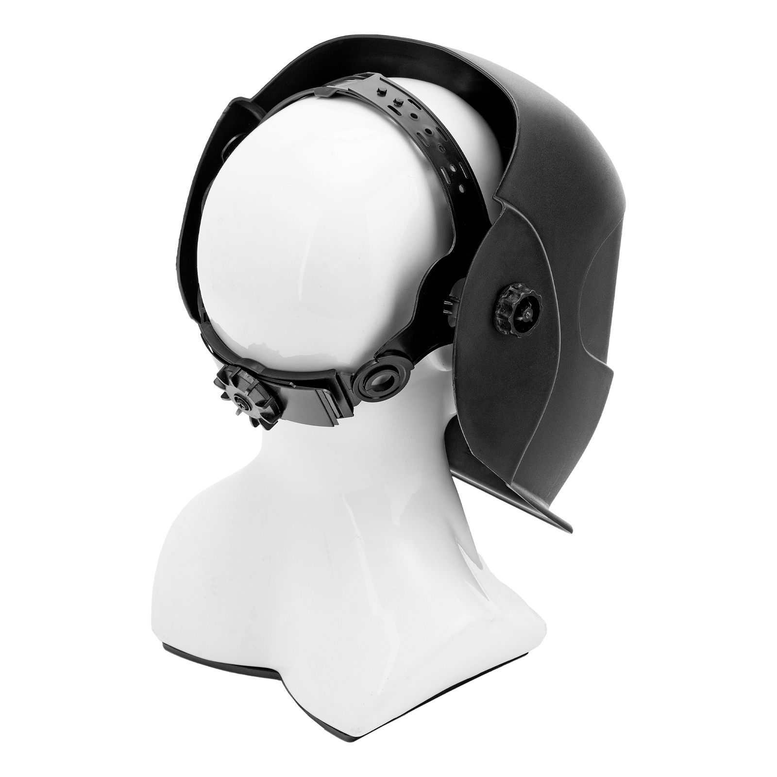 - Надежная фиксация — щиток не слетает во время работы благодаря регулируемому оголовью.