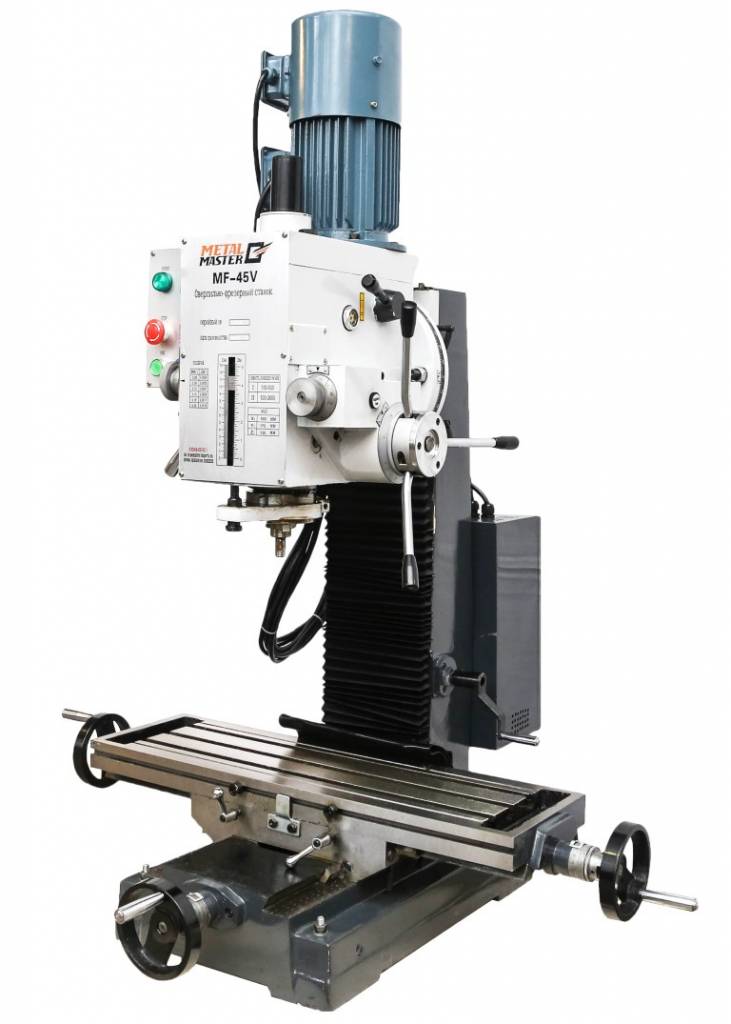 Сверлильно-фрезерный станок Metal Master MF-45V применяется для сверления глухих и сквозных отверстий в сплошных материалах, а также для рассверливания, зенкерования, развертывания, нарезания внутренних резьб, вырезания дисков из листового материала. На таких фрезерных станках можно выполнять фрезерование, наклонное торцевое фрезерование, шлифовку поверхности, горизонтальное фрезерование и другие операции.