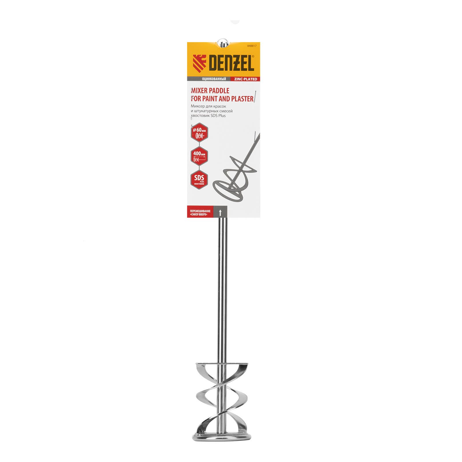Оцинкованный миксер для красок и штукатурных смесей Denzel 848817 размером 60 х 400 мм, с хвостовиком SDS Plus, используется для замешивания строительных растворов. Спиралевидная рабочая часть перемешивает состав снизу вверх, поэтому все компоненты распределяются в нем равномерно. Защитное кольцо предотвращает повреждение емкости для размешивания состава. Штукатурный миксер устанавливается в патрон перфоратора SDS Plus и применяется во время проведения строительных и отделочных работ.