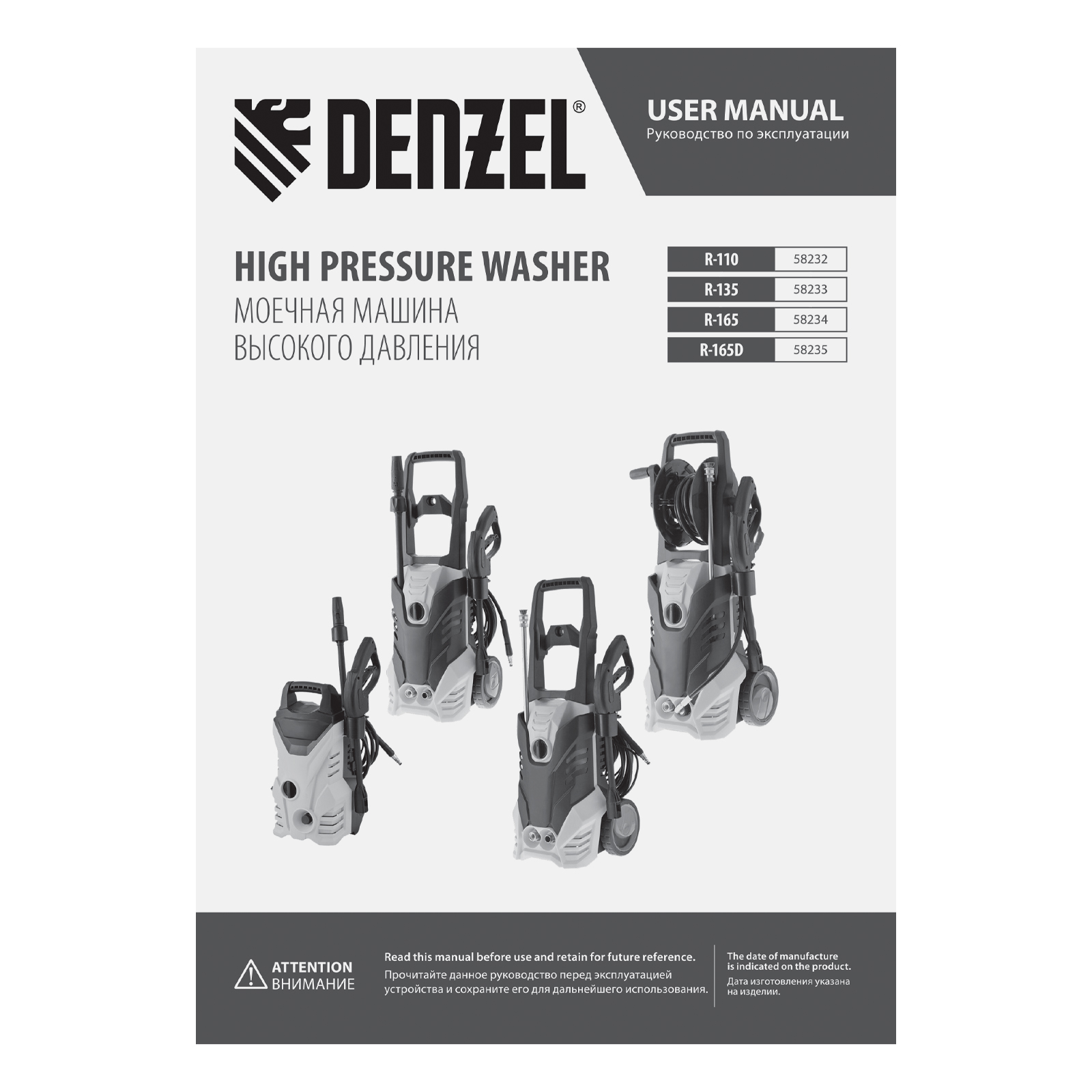 Моечная машина высокого давления R-170, 2000 Вт, 170 бар, 360 л/ч, колесная Denzel
