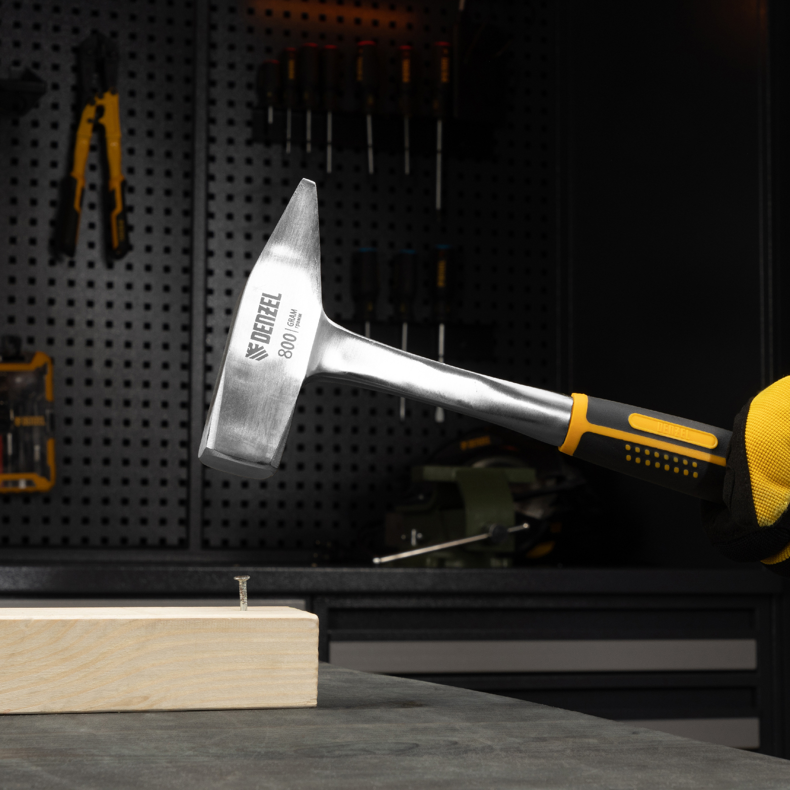 Молоток слесарный 800 г, цельнометаллический, двухкомпонентная рукоятка Denzel в Москве
