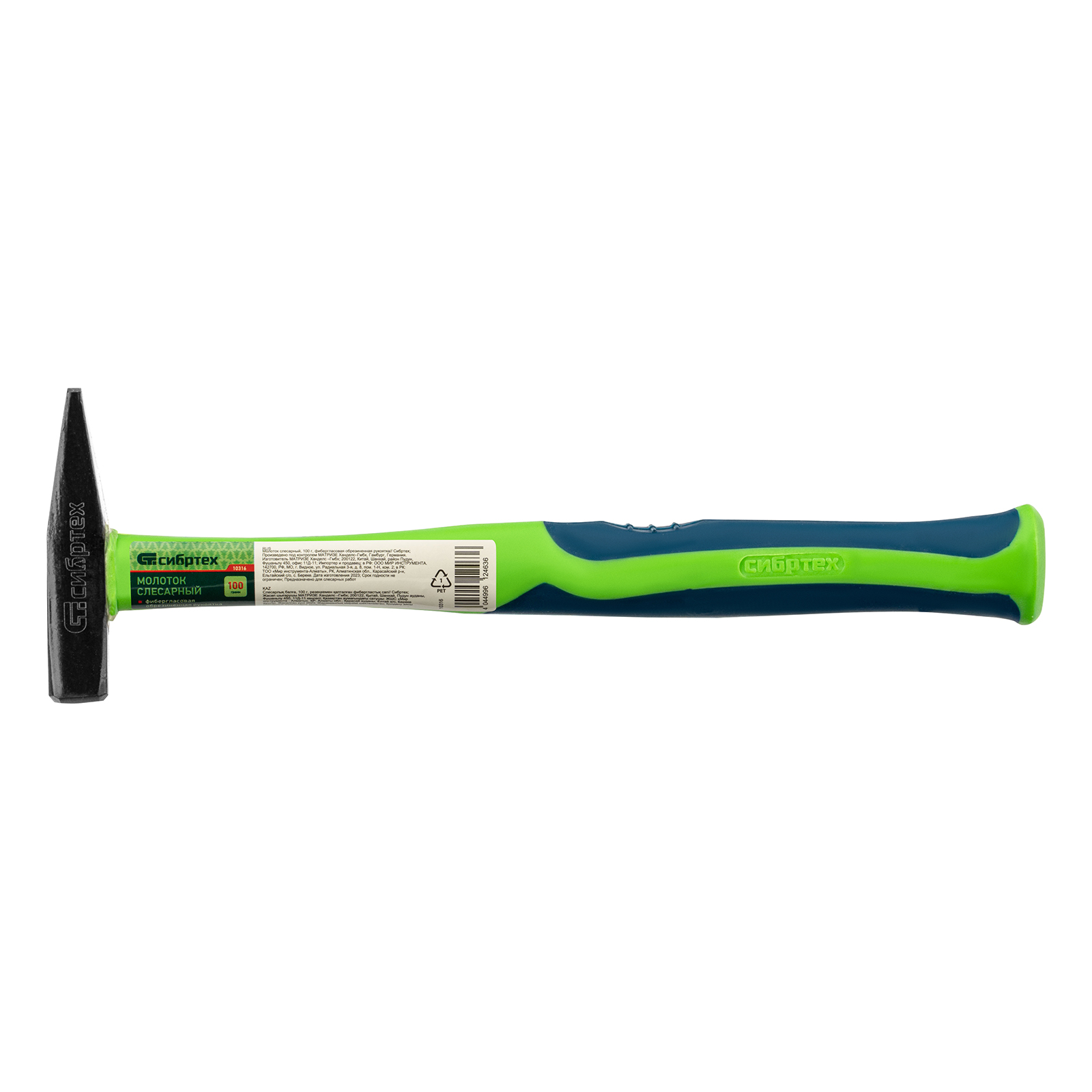 Молоток слесарный, 100 г, фибергласовая обрезиненная рукоятка Сибртех в Москве