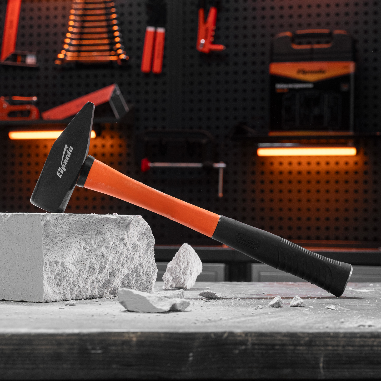 Слесарный молоток Sparta 10381 с бойком весом 1500 г и фибергласовой обрезиненной рукояткой — ударный инструмент, который используется для правки металла, сборки различных конструкций, а также для забивания крепежей. Молоток подходит для профессиональных строительных и ремонтных работ, а также для решения бытовых задач.