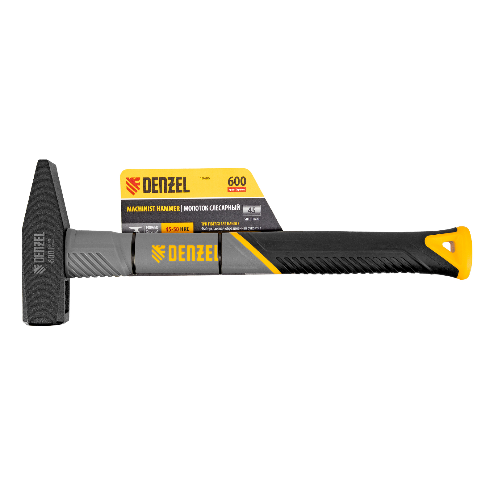 Молоток слесарный, 600 г, кованый, фибергласовая рукоятка c TPR покрытием Denzel в Москве
