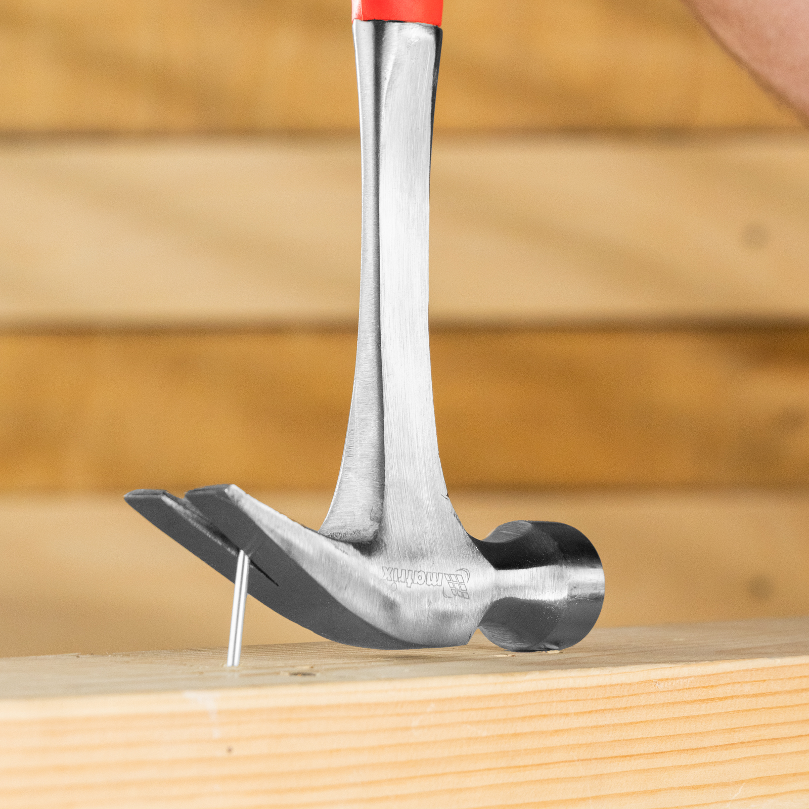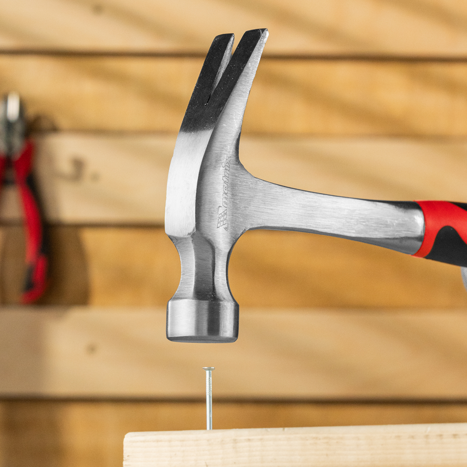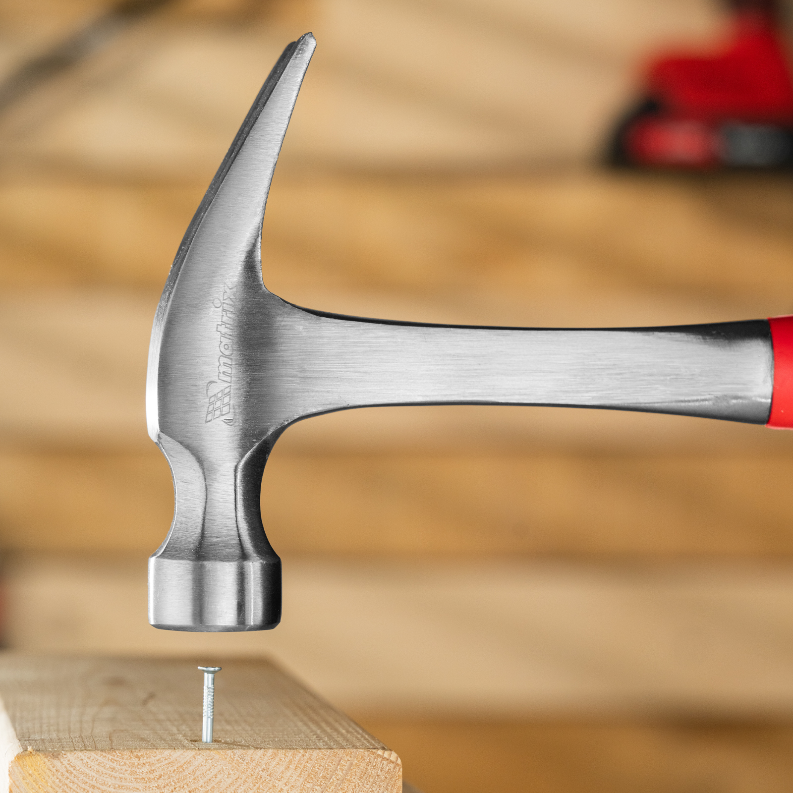 Цельнометаллический молоток-гвоздодер Matrix 10463 с рабочей головкой весом 570 г и двухкомпонентной рукояткой — ударный инструмент с функцией извлечения гвоздей. С одной стороны имеется круглый боек для нанесения ударов, а с другой — плоский изогнутый носок с клиновидной прорезью, позволяющей подцепить шляпку гвоздя. Инструмент используется в профессиональной сфере, а также подходит для решения бытовых задач.