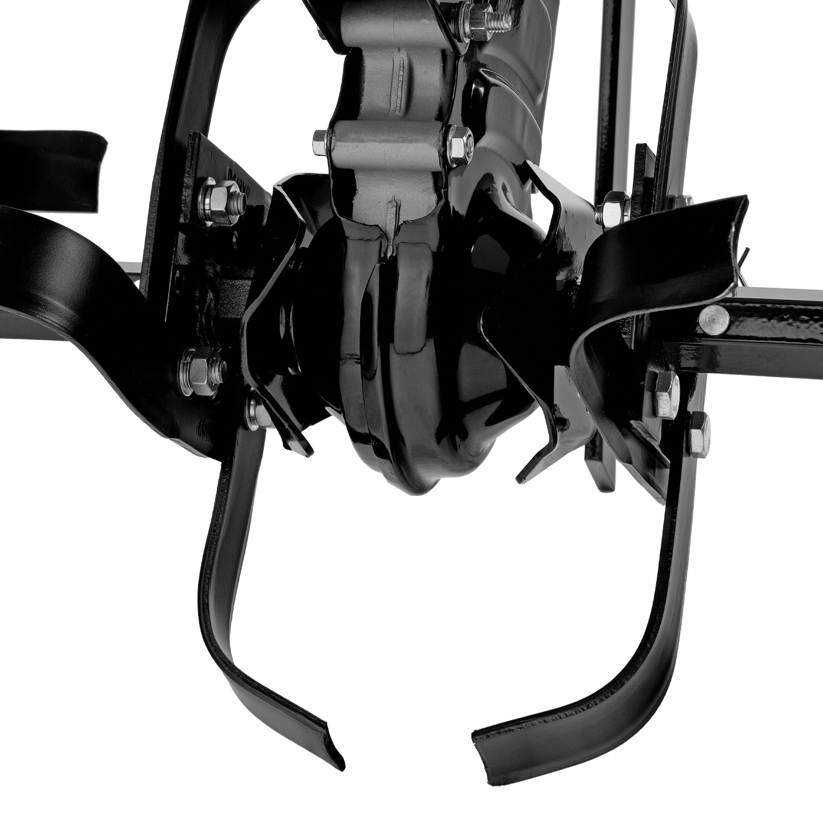 - Настраиваемая глубина вспашки — степень погружения фрез в почву можно задать, отрегулировав сошник по высоте.