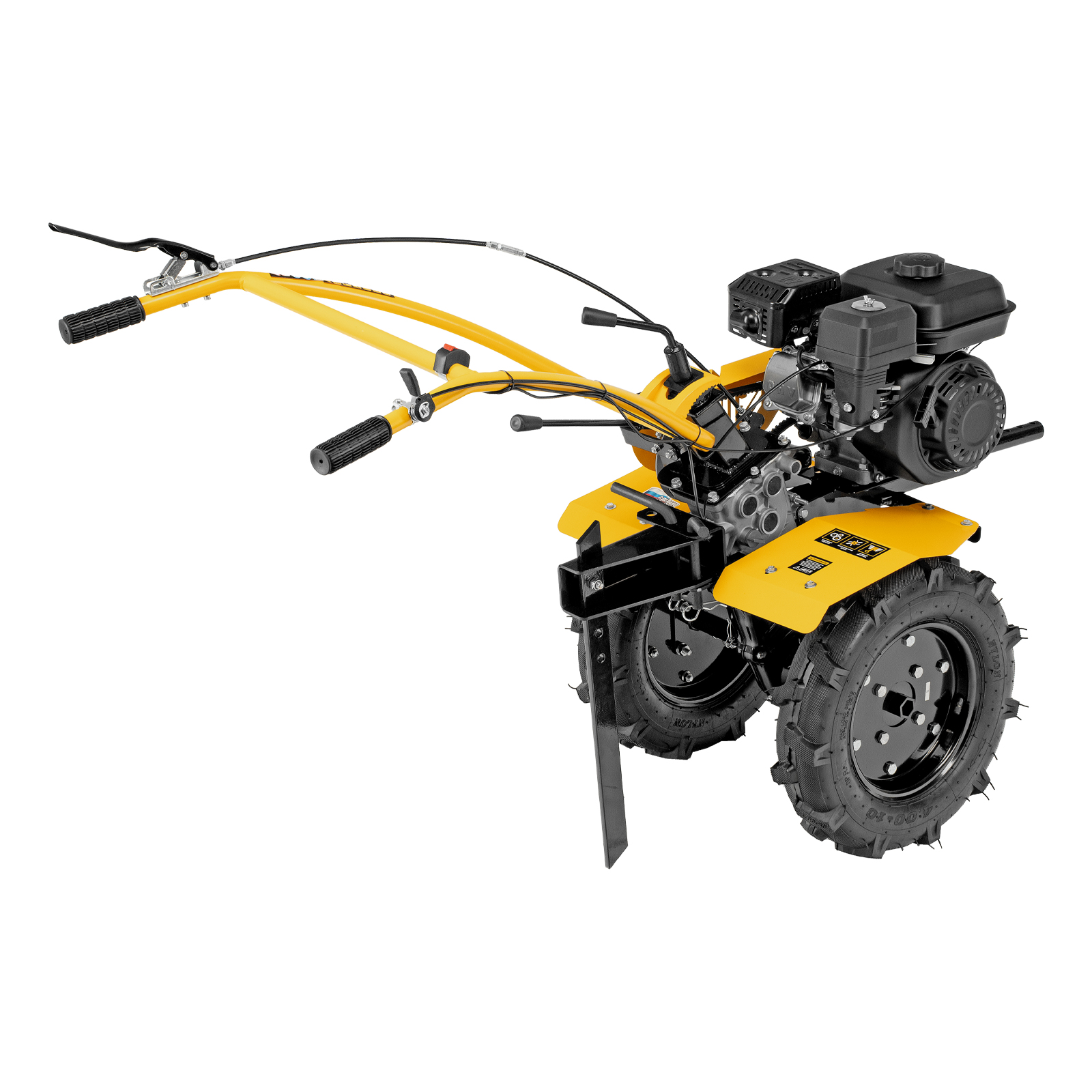 - Удобная работа — основные элементы управления расположены на рукоятках, для включения сцепления и регулировки оборотов двигателя не нужно наклоняться.