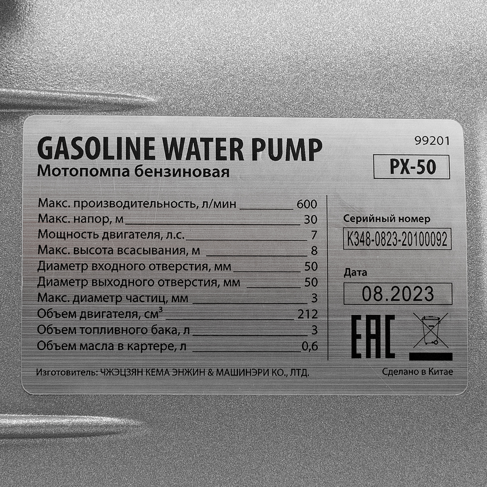 Мотопомпа бензиновая для чистой воды PX-50, 7 л.с, 2", 600 л/мин, глубина 8 м, напор 30 м Denzel в Москве