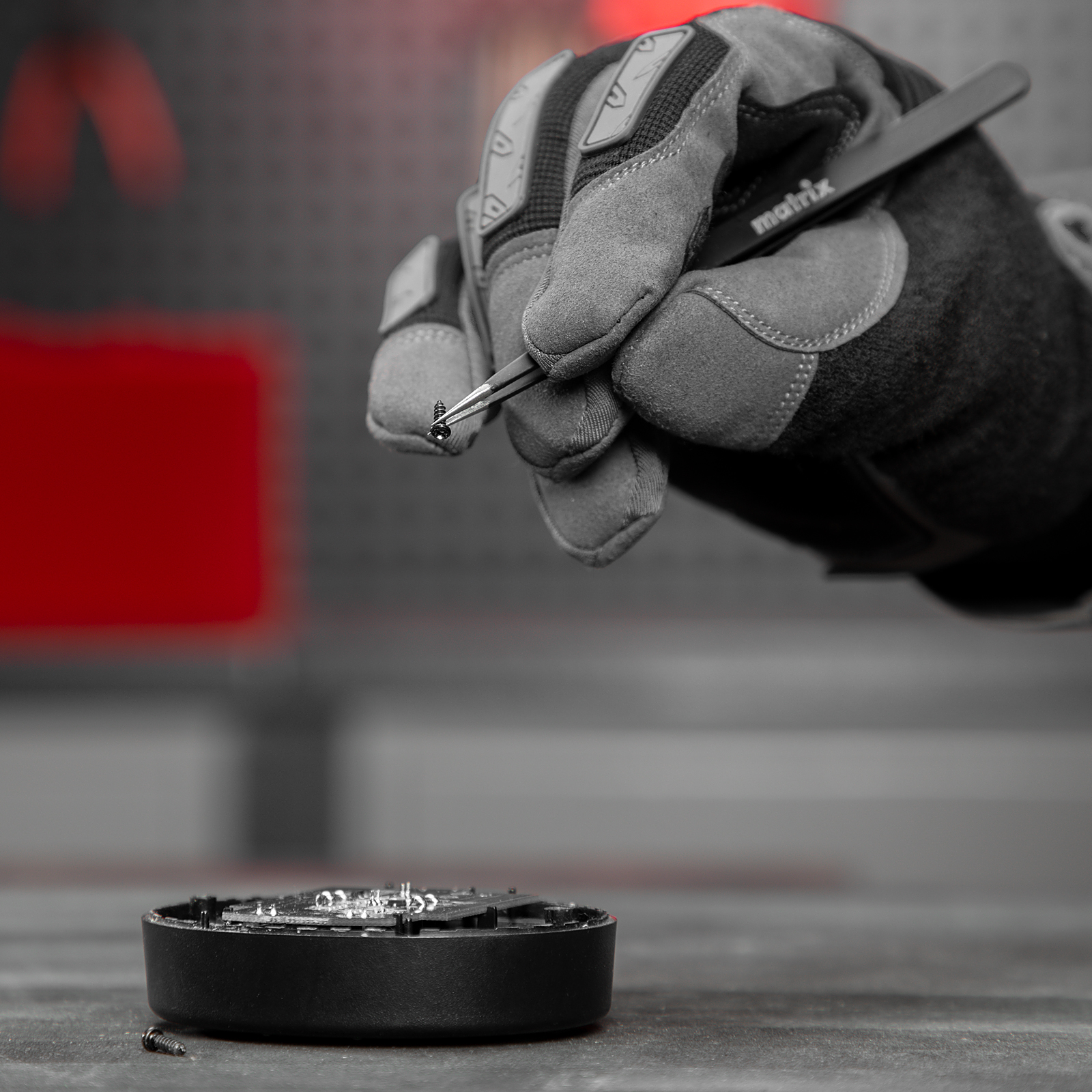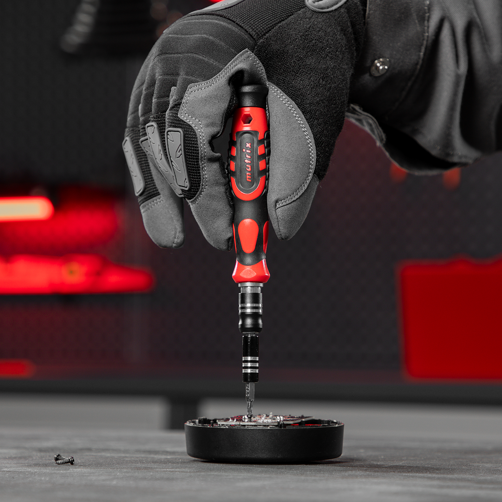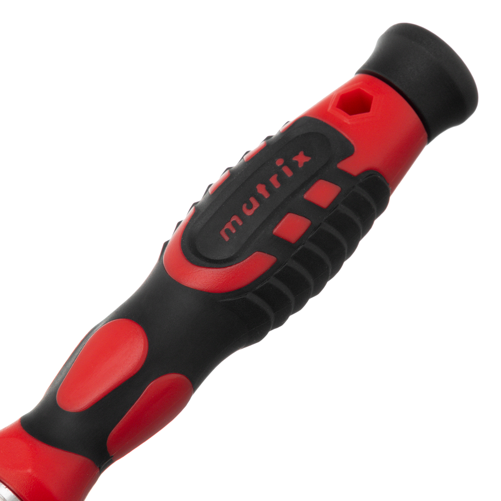 Набор для точных работ Matrix 13569 включает в себя 93 биты, 9 торцевых головок, телескопический и гибкий удлинители, намагничиватель-размагничиватель бит, отвертку и пинцет с защитным колпачком. С его помощью можно отремонтировать очки, игрушки, портативную и бытовую технику и т.д. Выдвижной стержень, гибкий удлинитель и пинцет позволяют работать с мелкими деталями в углублениях и труднодоступных местах.