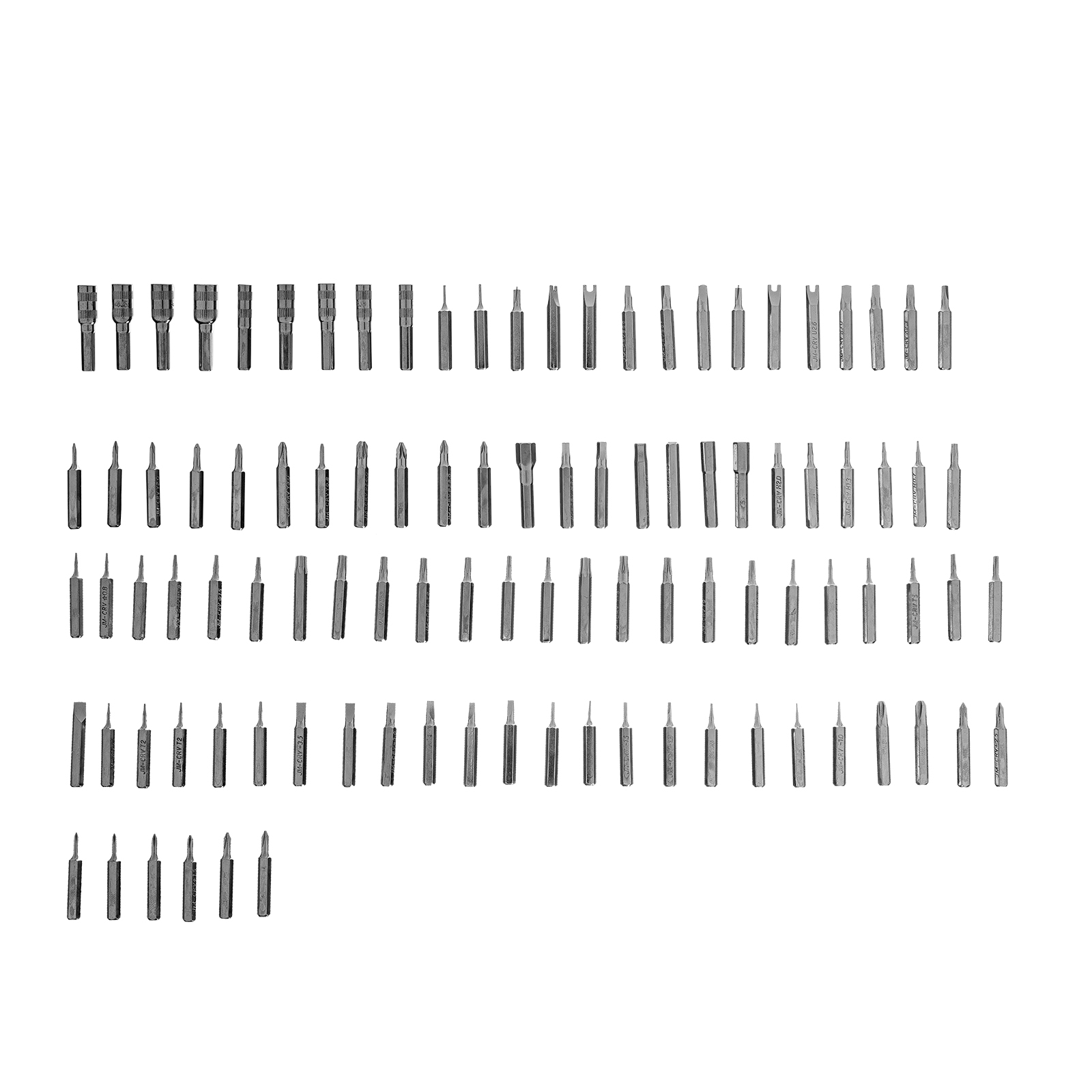 Биты для точных работ: H (0.7, 0.9, 1,3, 1.5, 2, 2.5, 3, 4, 4.5, 5, 6), T (1, 2, 3, 4, 5, 6, 7, 8, 9, 10, 15, 20), TT (6, 7, 8, 9, 10, 15, 20), PH (1, 1.5, 2, 2.5, 4), PZ (1, 2, 3, 4), SL (1, 1.3, 1.5, 2, 2.5, 3, 3.5, 4), Str (0.8, 1.2, 1.5, 2), Y (0.8, 2, 2.5, 3), STANDOFF (1.5), TA (2, 2.3, 2.6, 3), U (2.6, 3), SQ (0, 1, 2), SIM (0.8, 1) - 93 штТорцевые головки: H (2.5, 3, 3.5, 4, 4.5, 5, 5.5), TT (3.8, 4.5) - 9 штТелескопический удлинитель - 1 штГибкий удлинитель - 1 штНамагничиватель-размагничиватель - 1 штОтвертка - 1 штПинцет с защитным колпачком - 1 штПластиковый кейс - 1 шт |