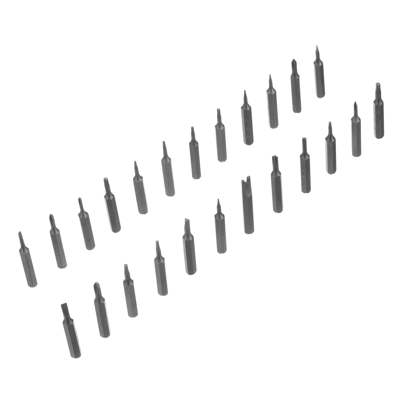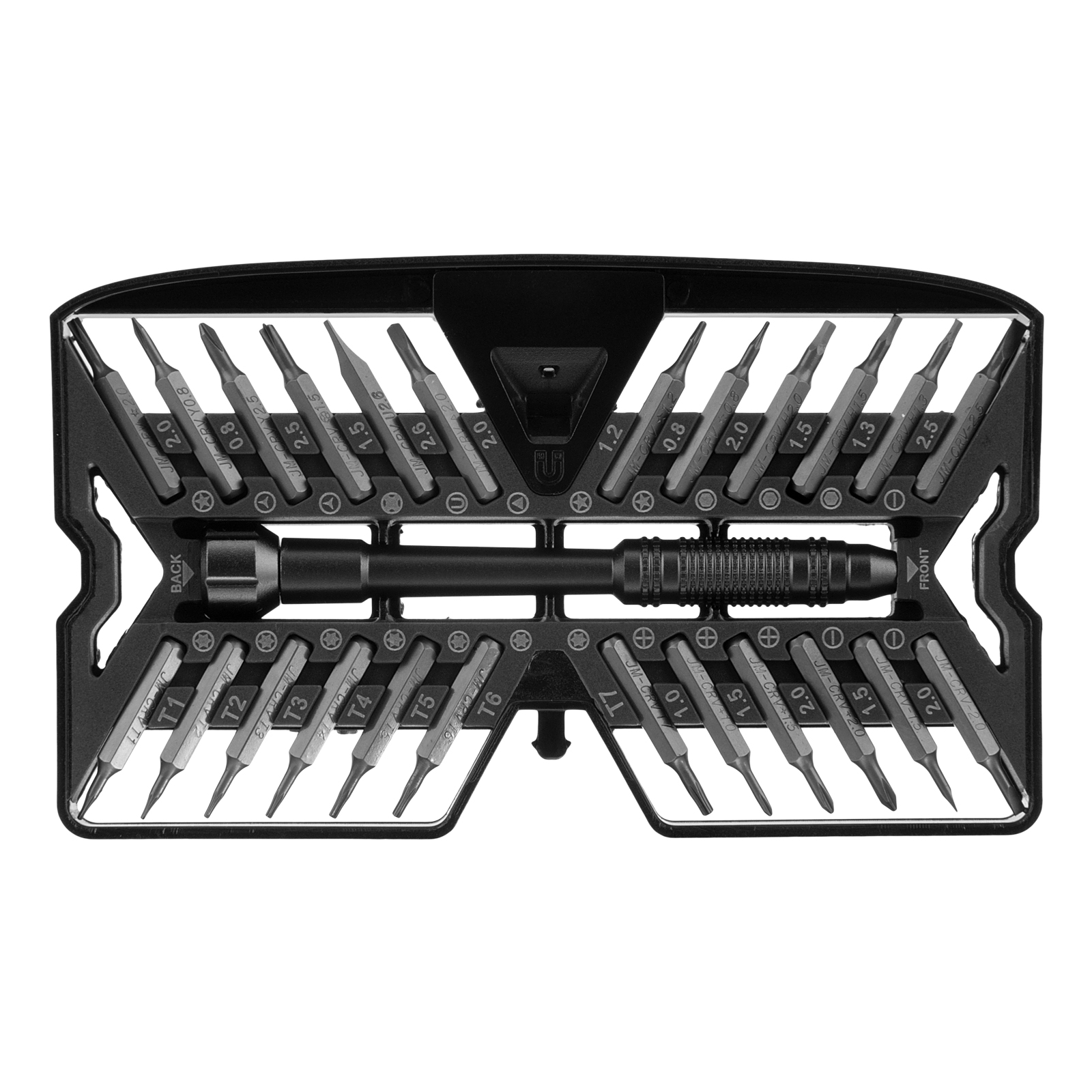 Биты для точных работ: H (1.3, 1.5, 2), T (1, 2, 3, 4, 5, 6, 7), PH (1, 1.5, 2), SL (1, 1.5, 2), Str (0.8, 1.2, 2), Y (0.8, 2), STANDOFF (1.5), TA(2.0), U (2.6) Отвертка - 1 штПластиковый кейс - 1 шт |