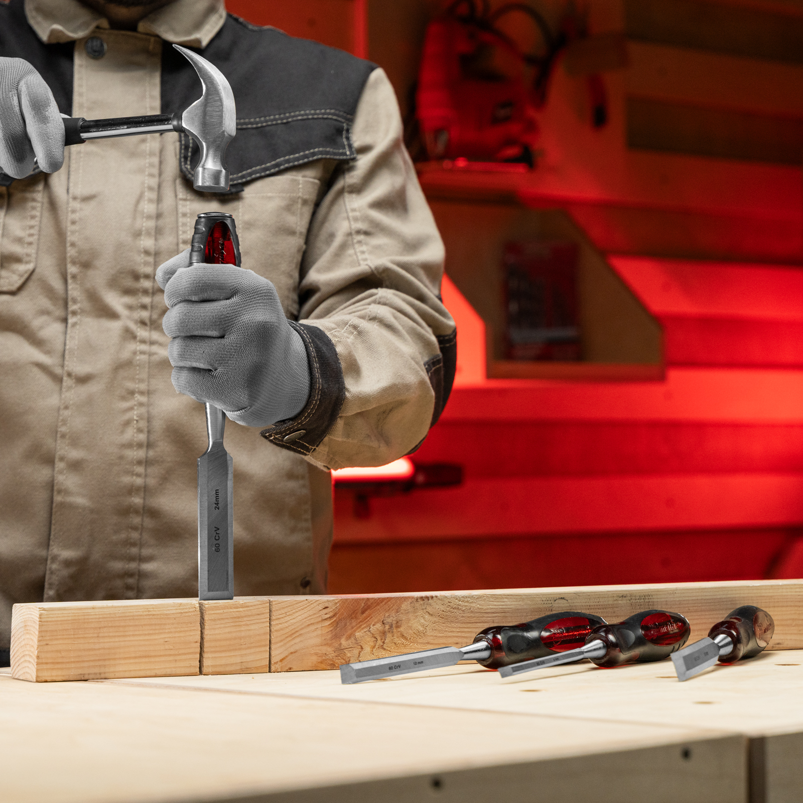 - Повышенная прочность — стамески из инструментальной легированной стали CrV имеют сквозной металлический стержень и легко выдерживают ударные нагрузки.