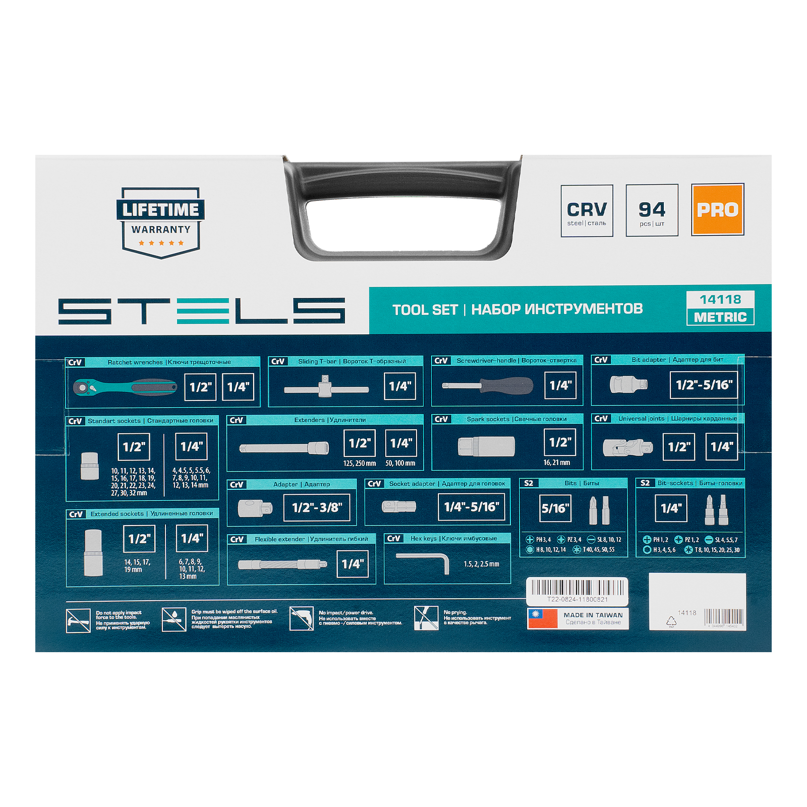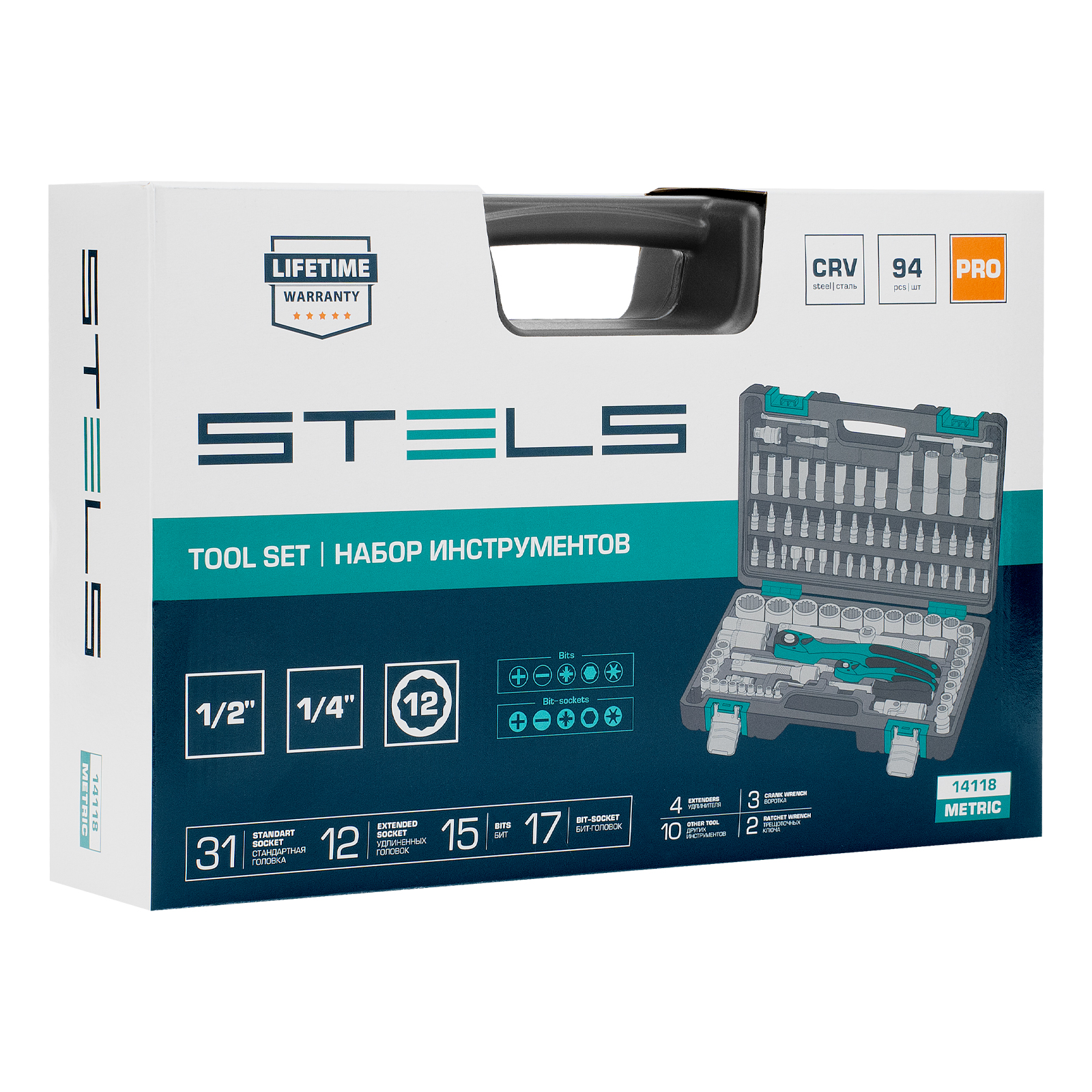 Набор инструментов 1/2", 1/4", CrV, 12 гранные головки, пластиковый кейс, 94 предмета Stels в Москве