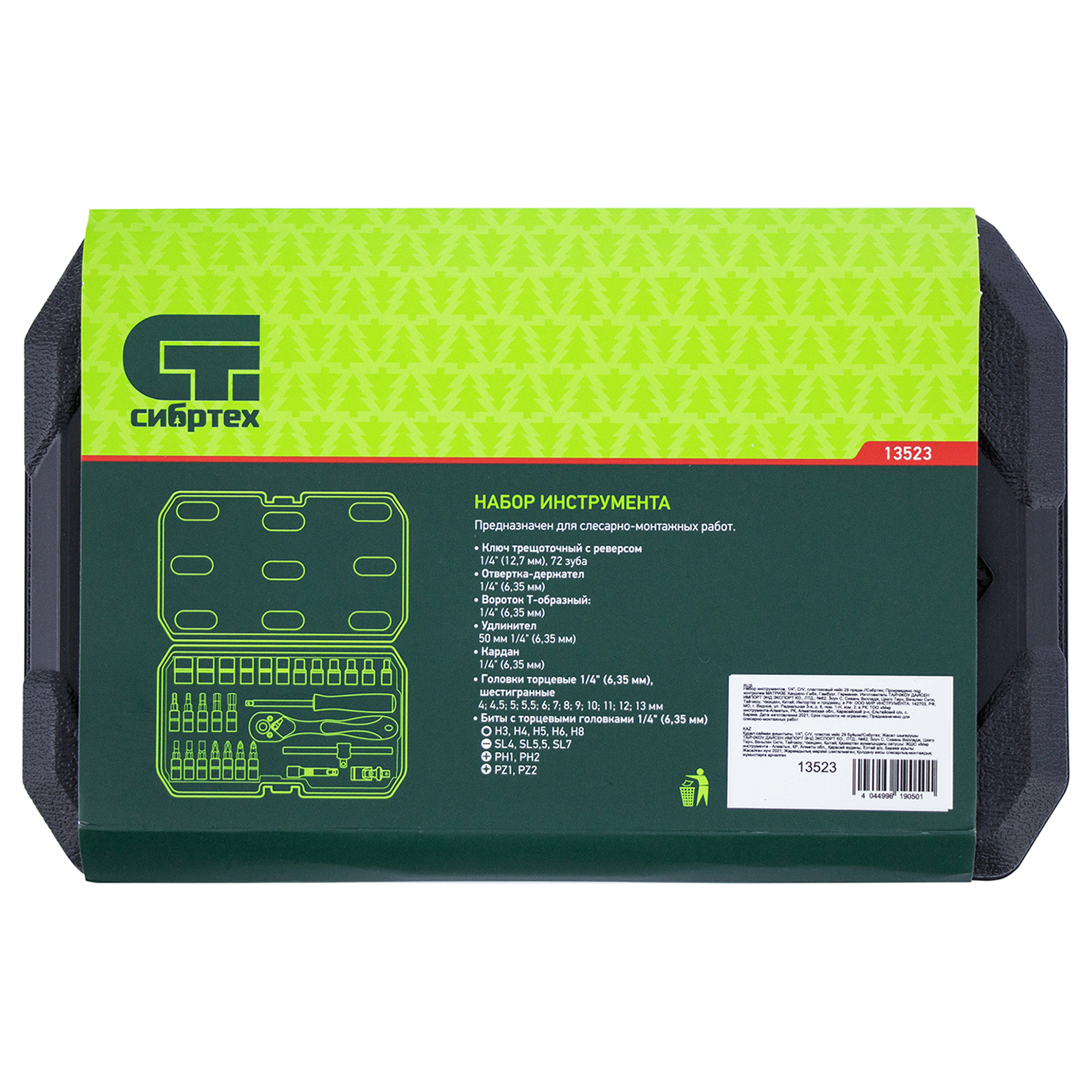 Набор инструментов 29 предметов, CrV, 1/4" Сибртех в Москве