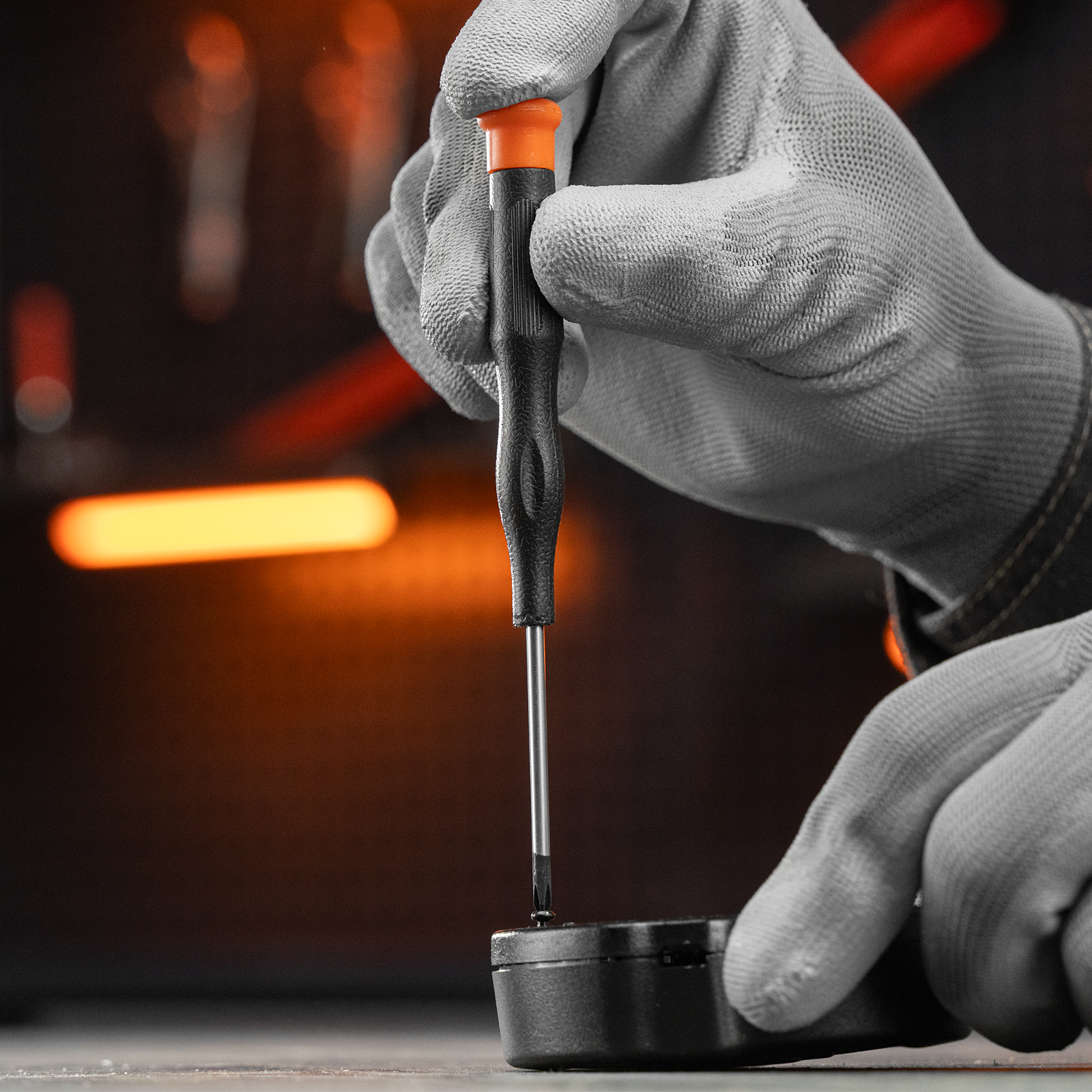 - Отвертки и длинногубцы имеют пластиковые рукоятки для удобства захвата.