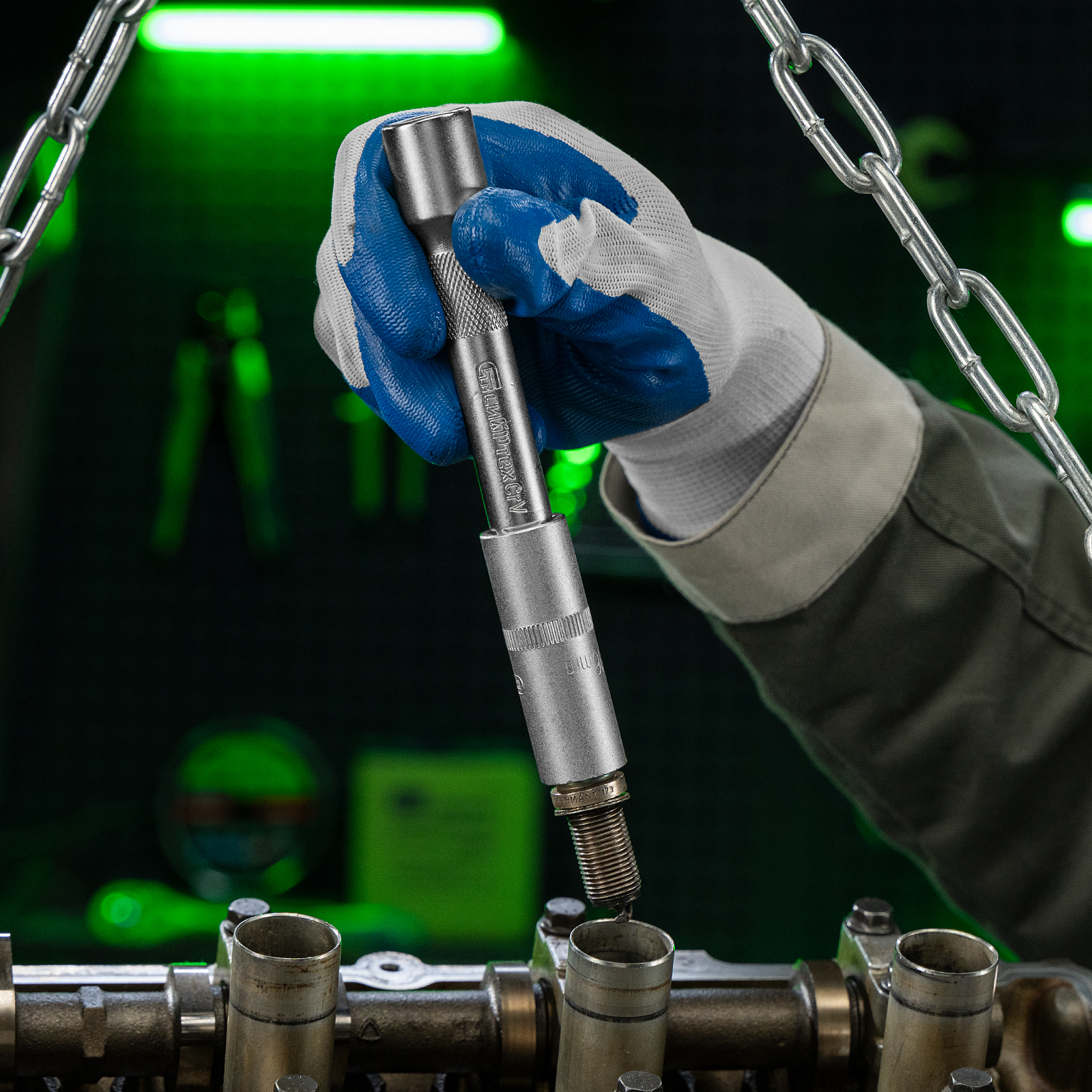 - Прочная фиксация — шариковый замок на трещотках, воротках, шарнирах и удлинителях надежно удерживает головки.
