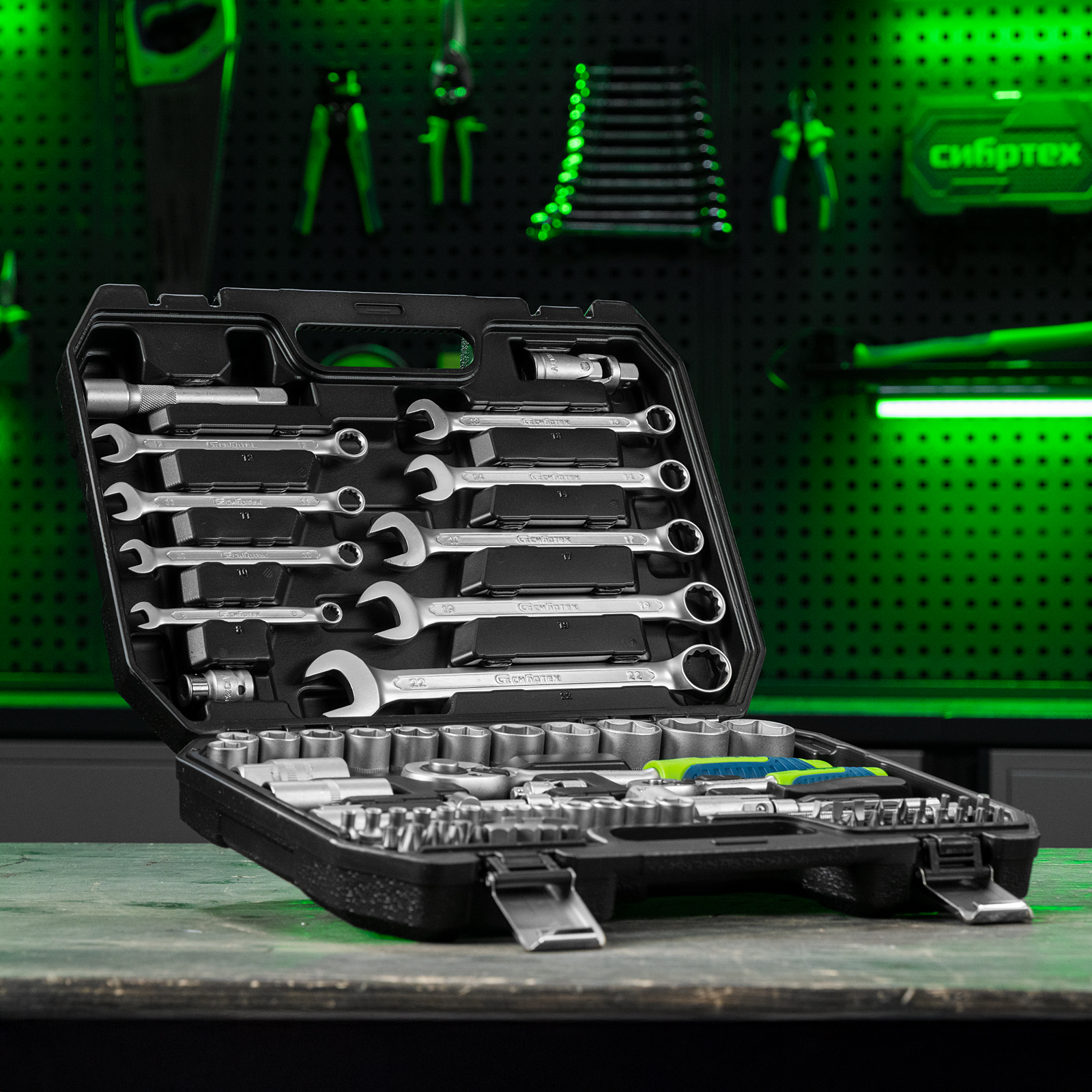 Набор инструментов, 1/2", 1/4", пластиковый кейс, 82 предмета Сибртех в Москве