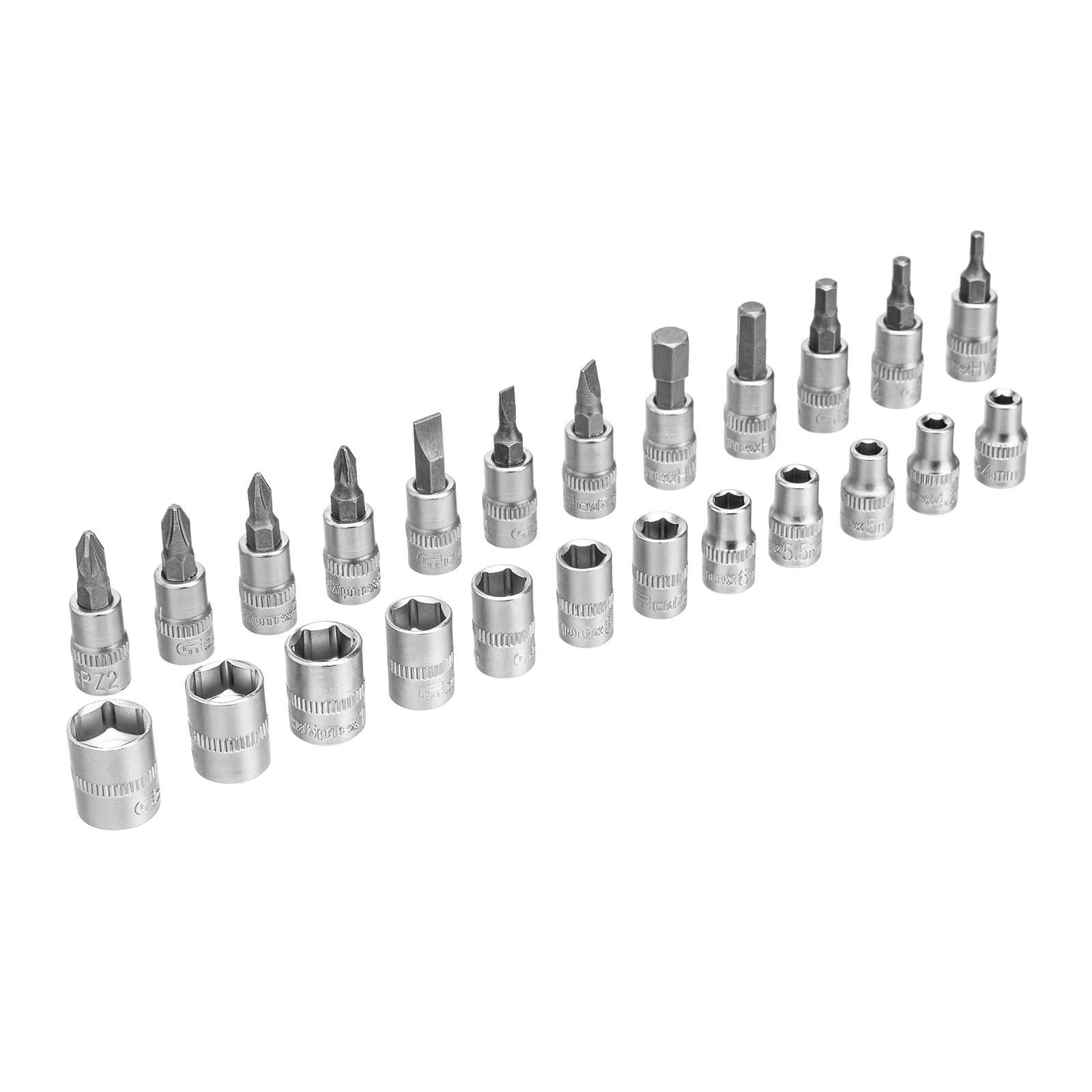 - Прочная фиксация — шариковый замок на трещотках, воротках, шарнирах и удлинителях надежно удерживает головки.