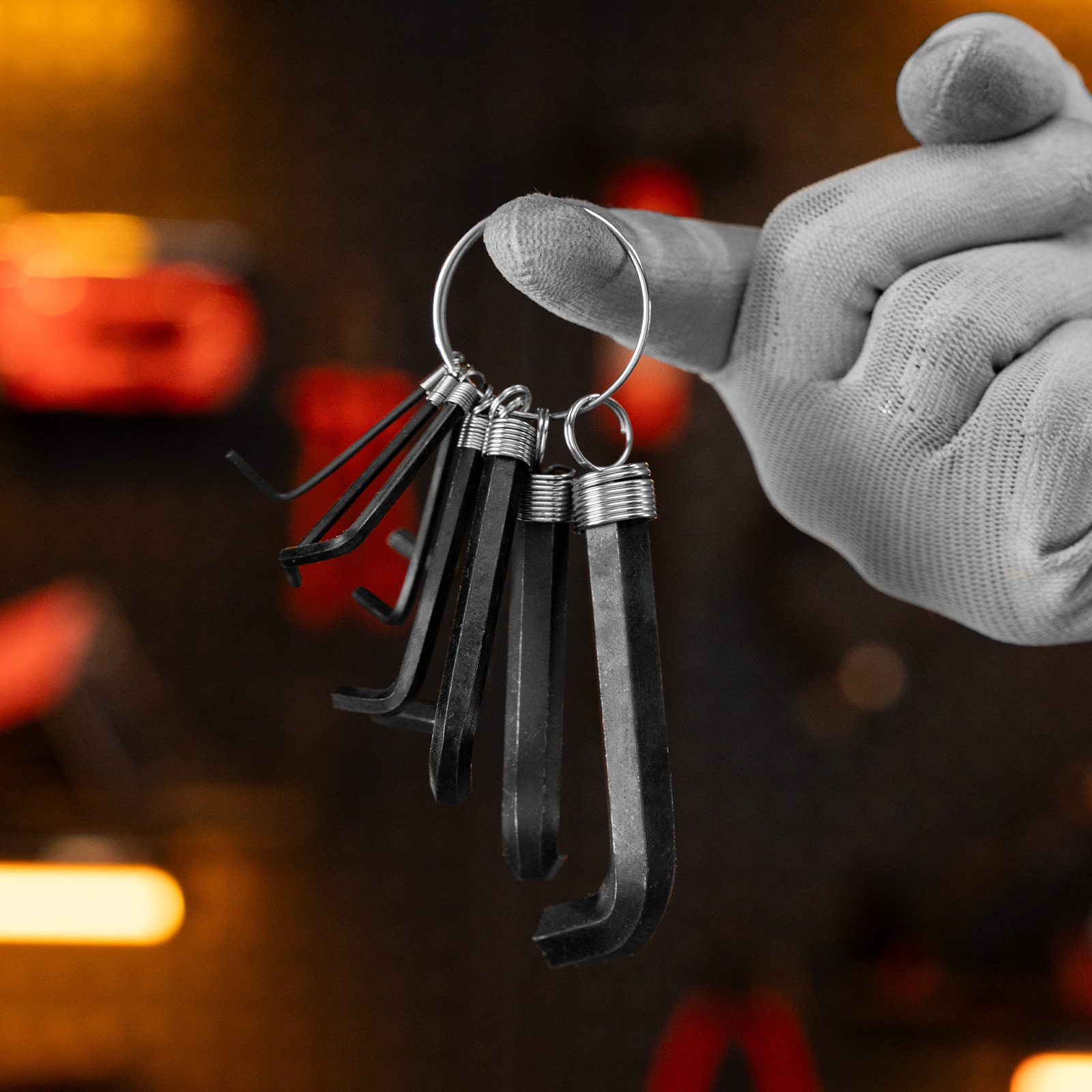 - Удобное хранение и транспортировка — ключи подвешены на металлическое кольцо.
