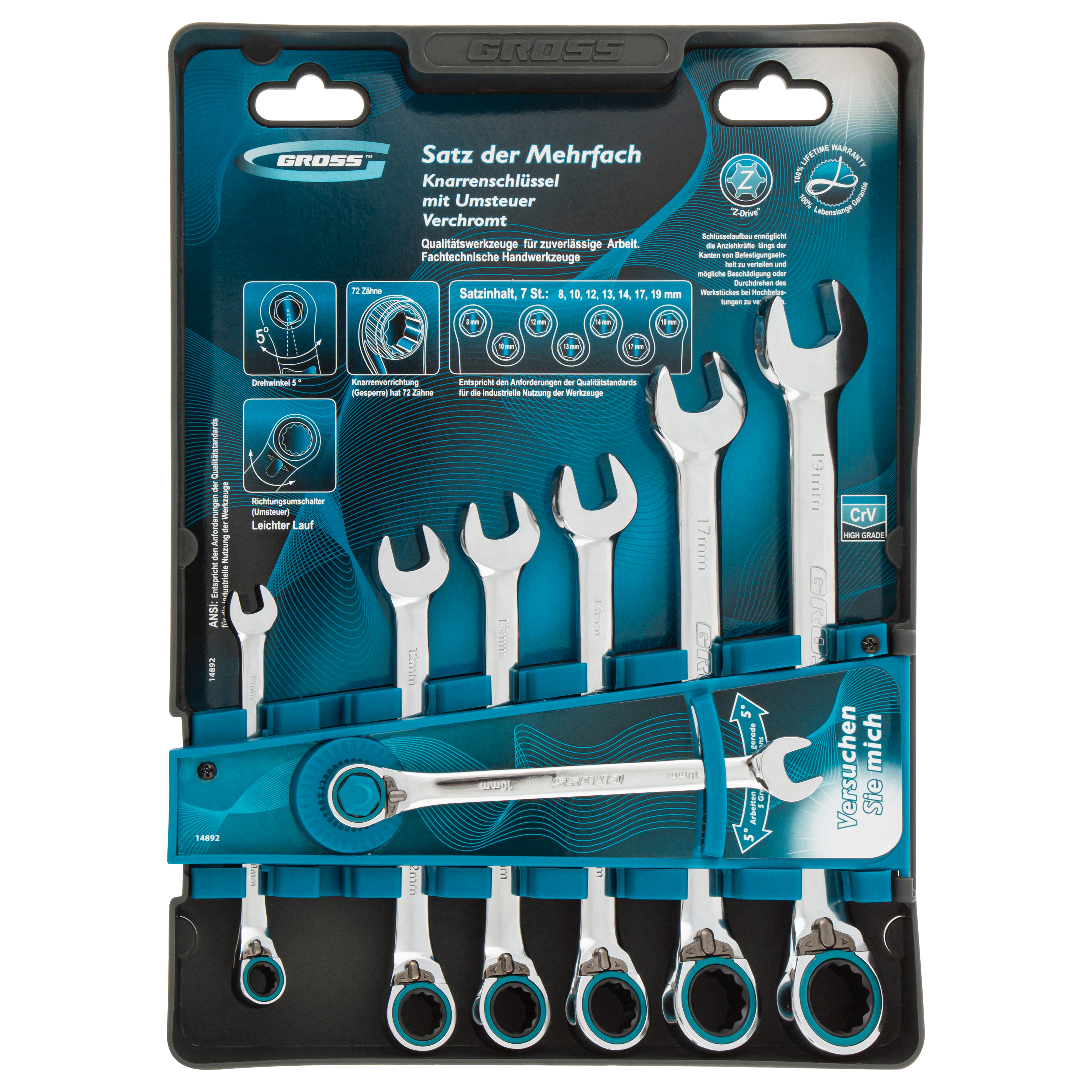 Набор ключей комбинированных с трещоткой, 8-19 мм, 7 шт, реверсивные, CrV Gross в Москве