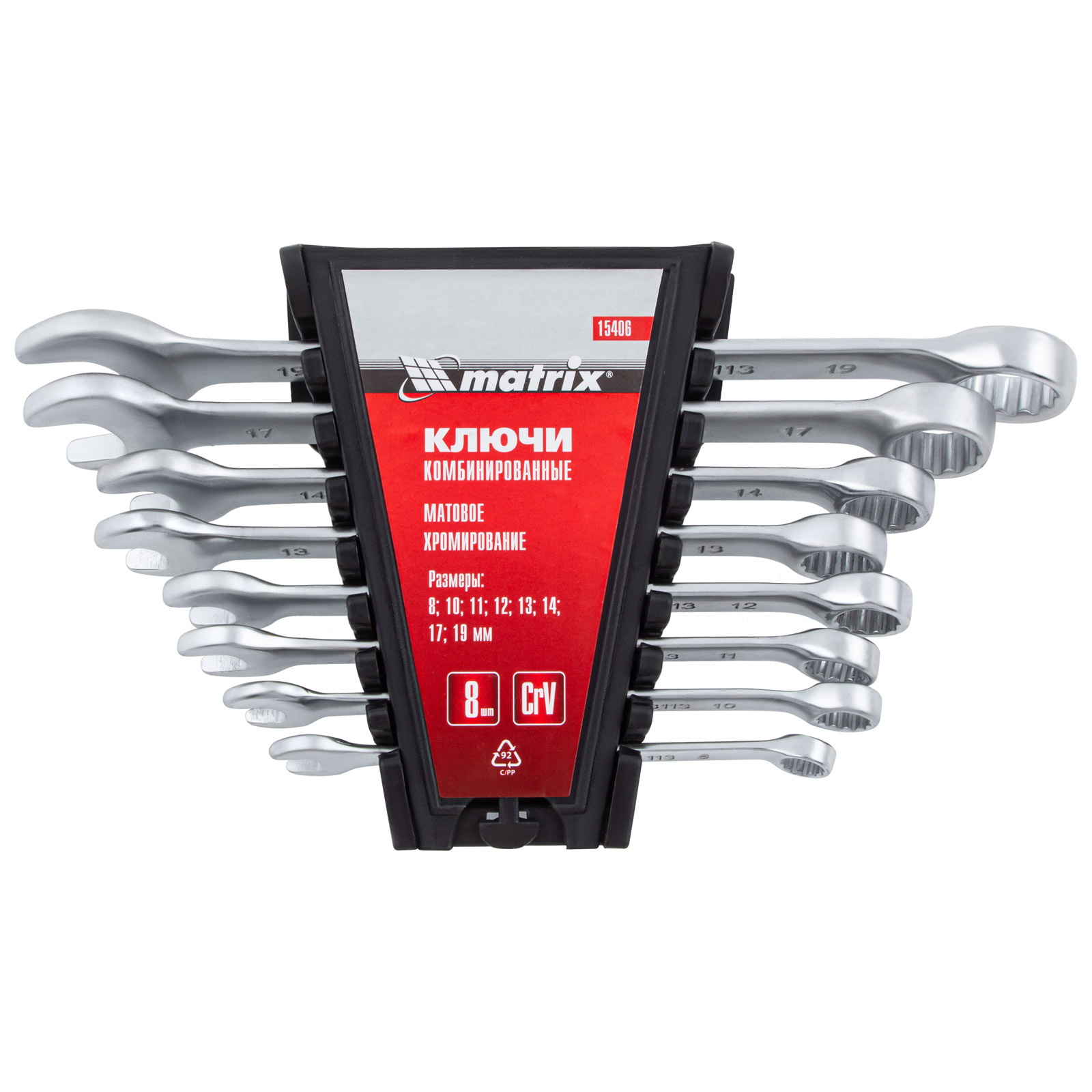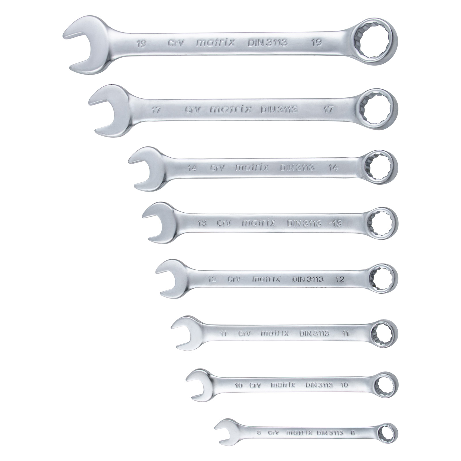 Набор ключей комбинированных, 8-19 мм, 8 шт, CrV, матовый хром Matrix в Москве