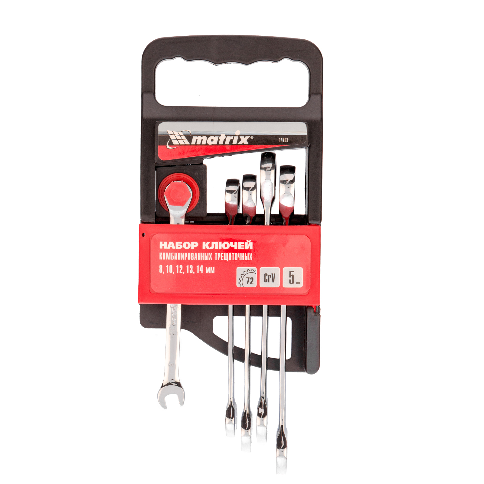 Набор из 5 комбинированных трещоточных ключей Matrix 14793 пригодится мастерам и автолюбителям для монтажа/демонтажа болтов и гаек наиболее популярных типоразмеров. Храповой механизм с 72 зубьями облегчает закручивание или откручивание крепежей, в том числе в труднодоступных местах.