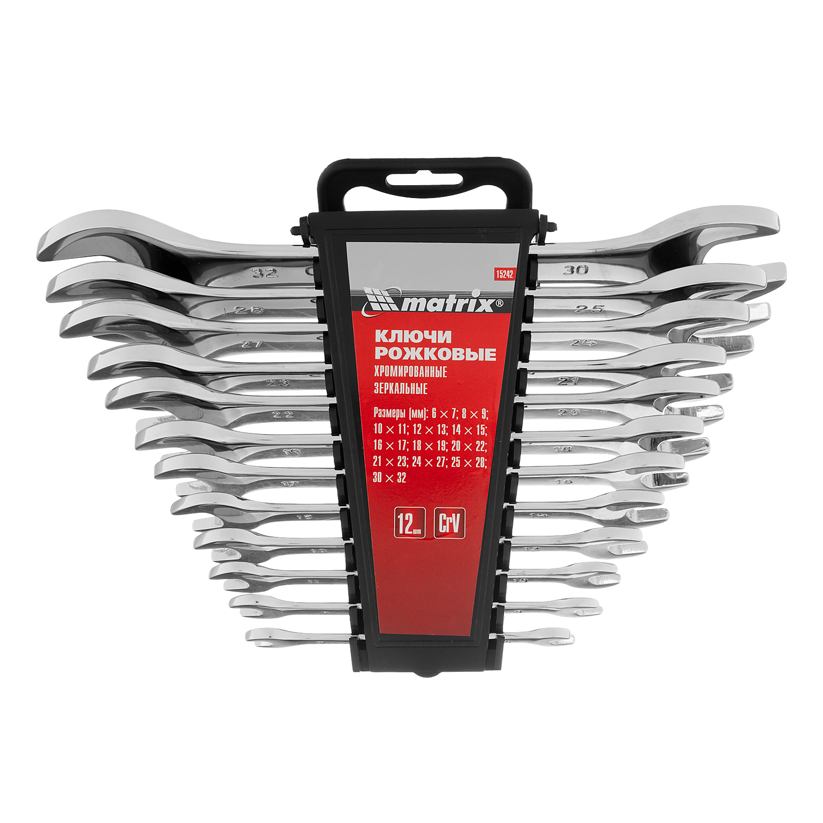 Набор ключей рожковых 12 шт, (6-32мм) CrV, EllipticaL зеркальное хромирование Matrix в Москве