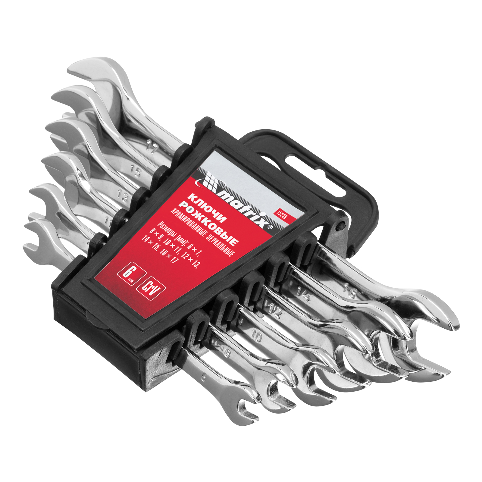 Набор ключей рожковых 6 шт, 6-17 мм, CrV, Elliptical, зеркальное хромирование Matrix в Москве