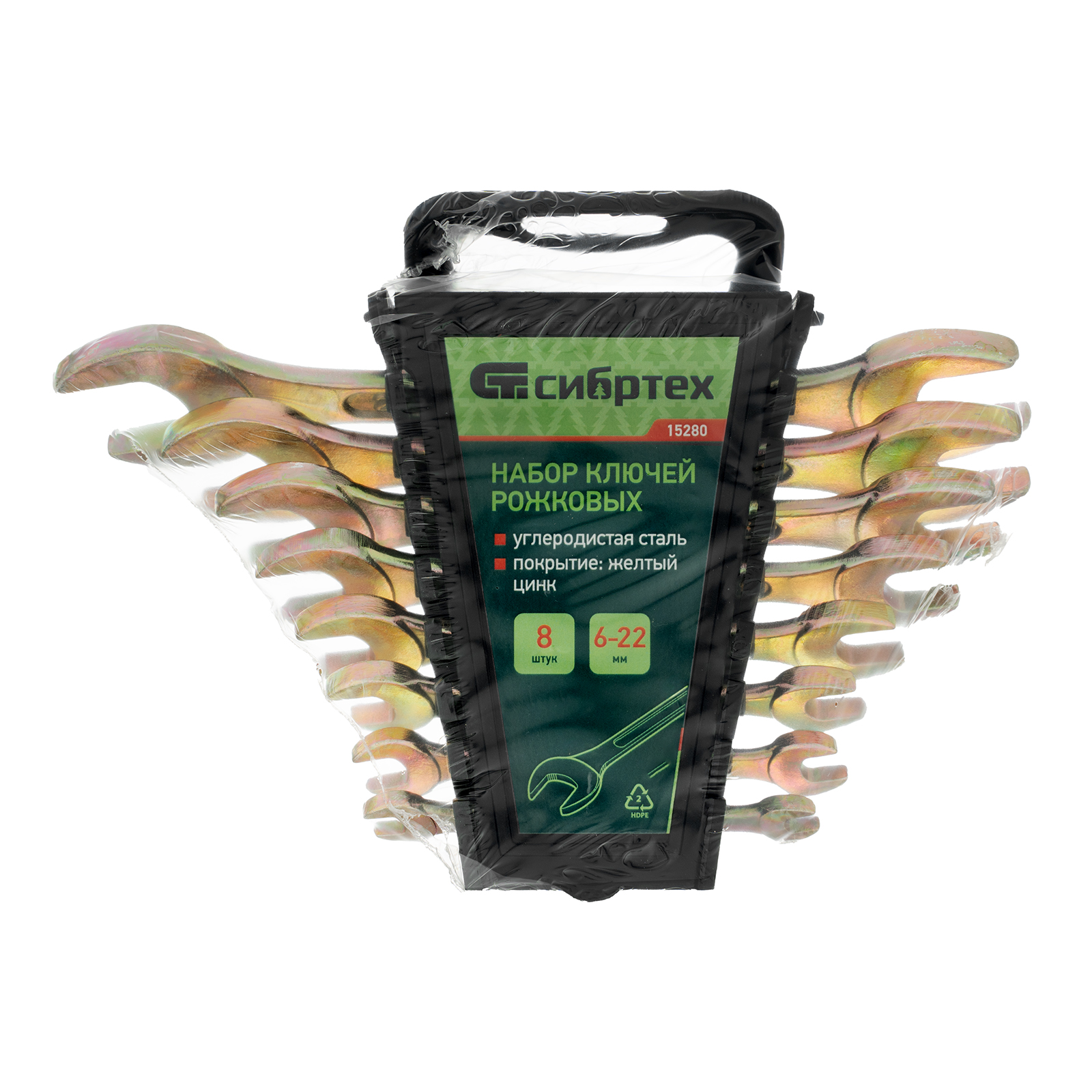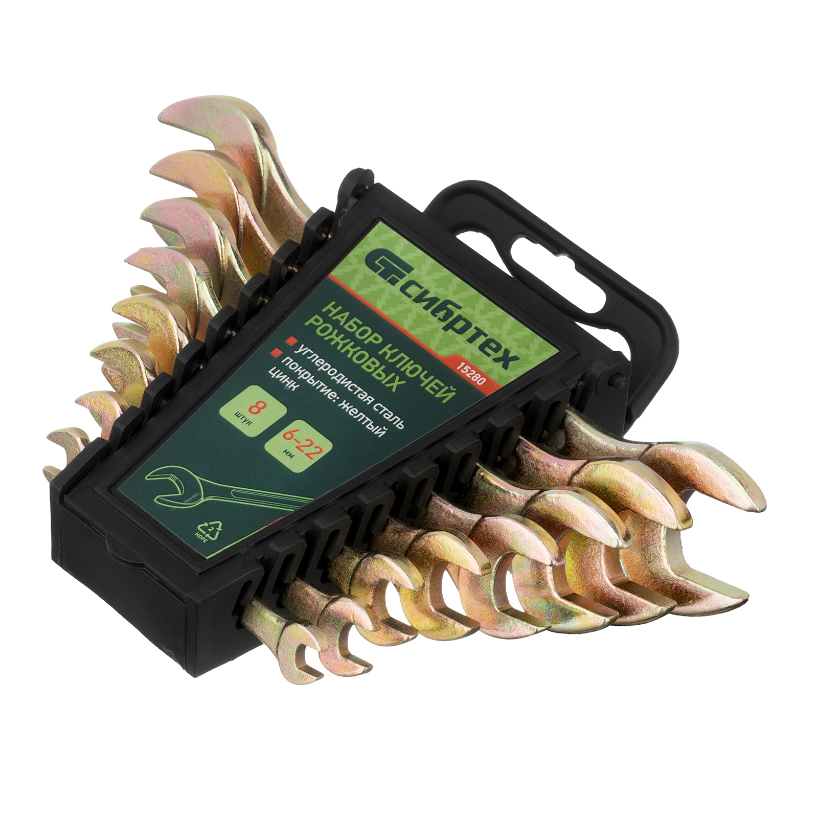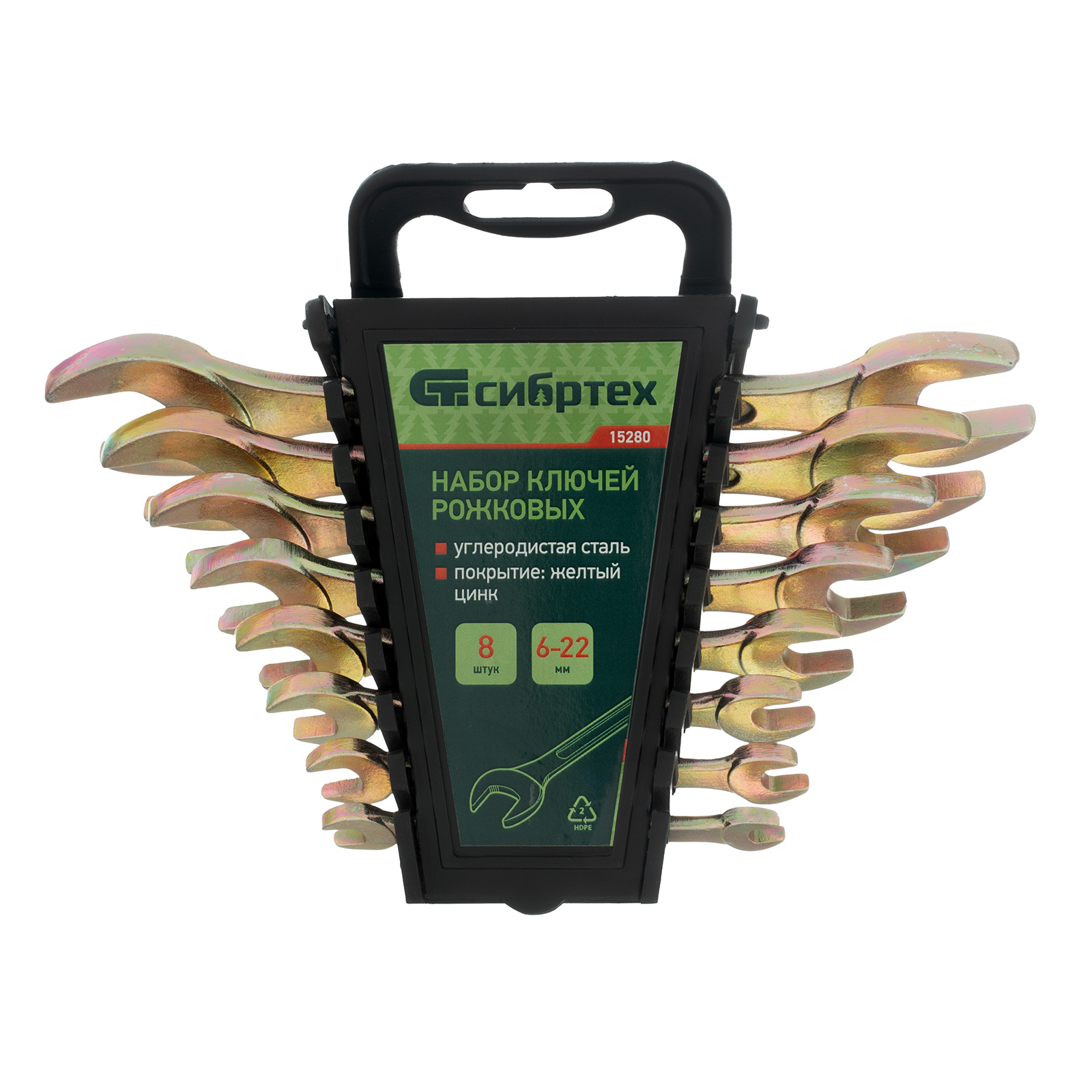 Набор ключей рожковых 6-22 мм, 8 шт, желтый цинк Сибртех в Москве