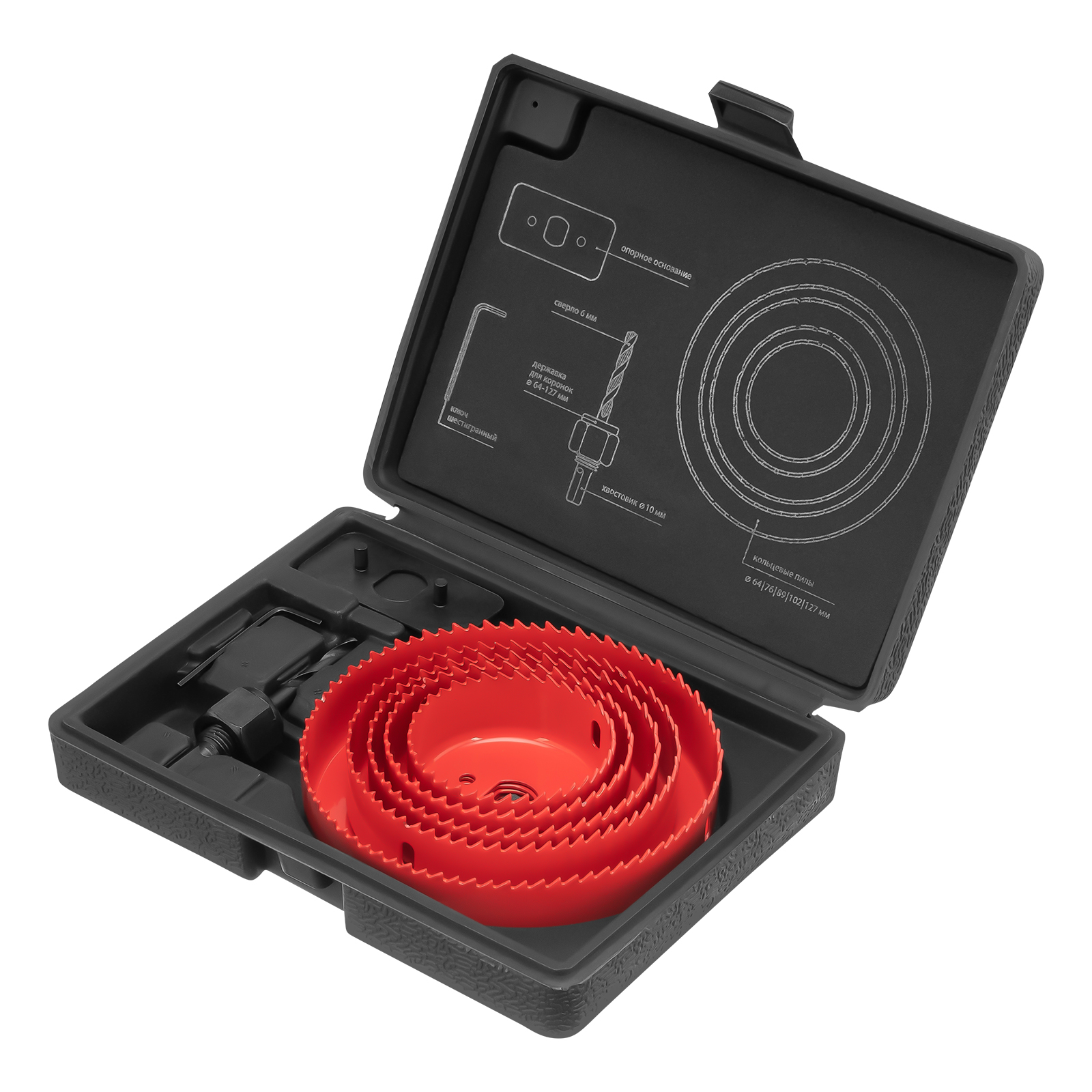 Кольцевые пилы - 1 штшестигранный ключ - 1 штцентрирующее сверло - 1 шт |