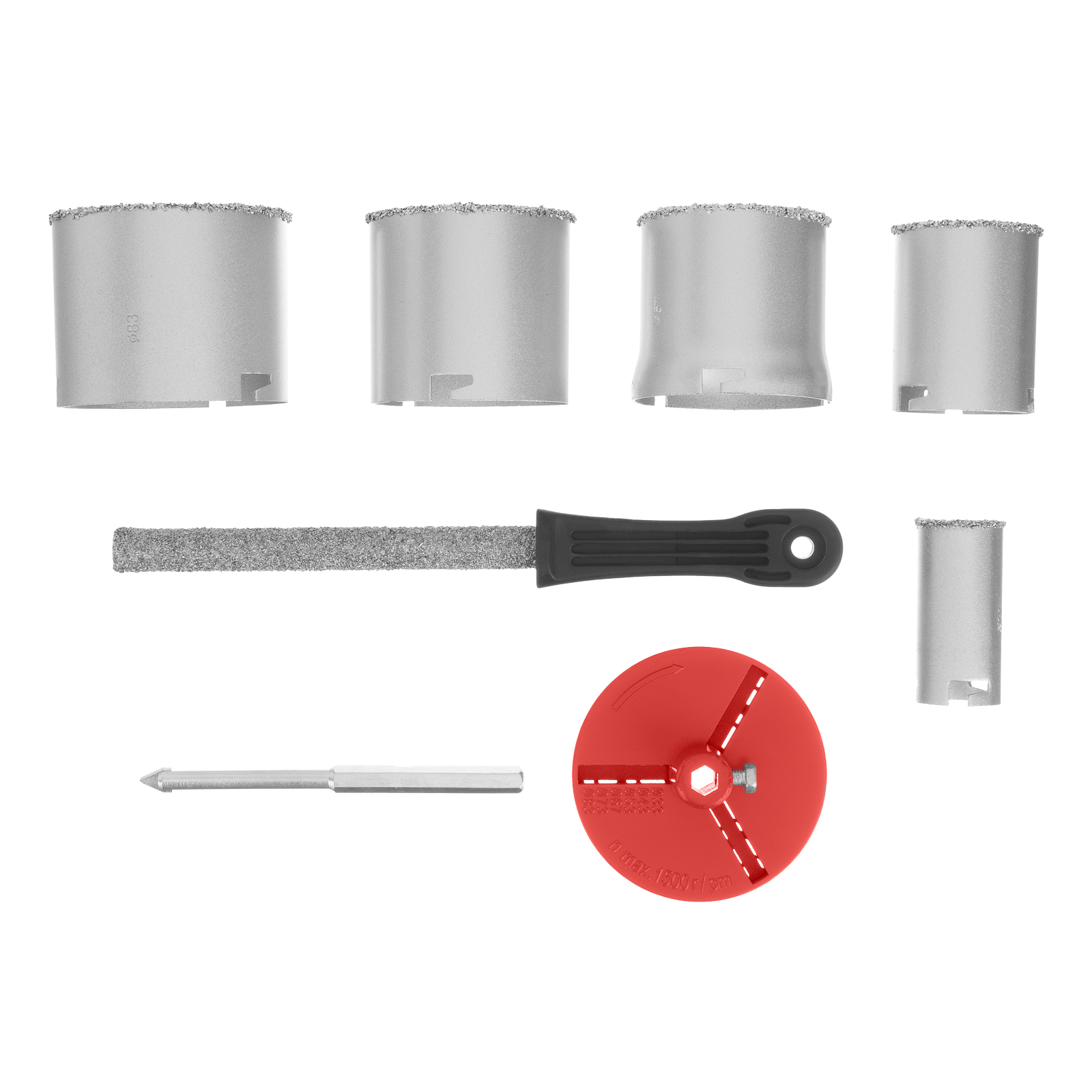 Пластиковый бокс - 1 штКоронка 33, 53, 67, 73, 83 - 5 штНапильник - 1 штДержавка для коронок - 1 штСверло центрирующее - 1 штЦентрирующее сверло - 1 шт |