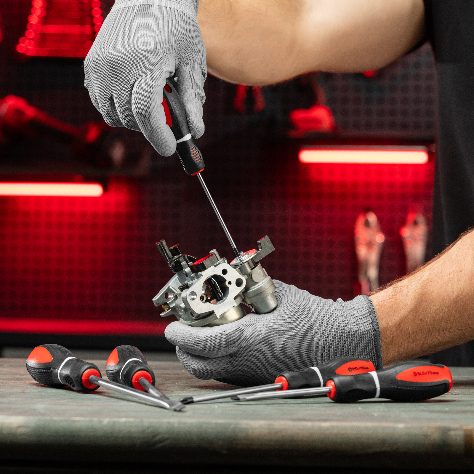 - Комфортная работа — трехкомпонентные рукоятки с насечками в подпальцевых выемках не выскальзывают из руки.