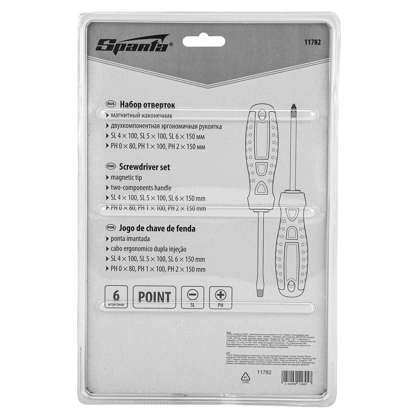 Набор отверток "Point", CrV, двухкомпонентные рукоятки, 6 шт, Sparta в Москве