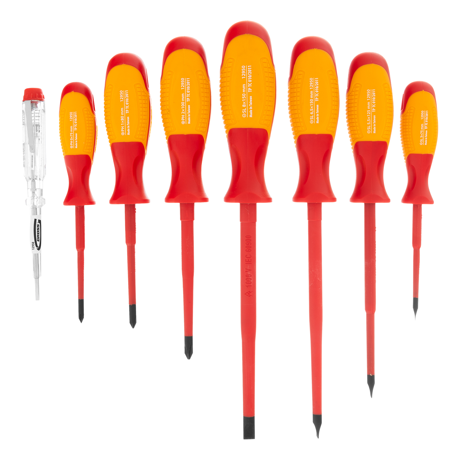 Набор диэлектрических отверток Gross 12950 с двухкомпонентными рукоятками включает 8 предметов из стали CrMo, в том числе тестер для проверки наличия напряжения в сети. Позволяет проводить монтаж/демонтаж крепежных элементов типа PH и SL под напряжением до 1000 В. Благодаря диэлектрическому покрытию стержней оператор защищен от поражения током во время ремонта электроприборов и электрооборудования. Набор включает отвертки с профилем PH и SL с зауженными стержнями 75-150 мм, что позволяет работать с крепежом в труднодоступных местах. Важно — техника безопасности запрещает работу под напряжением даже при использовании инструмента с диэлектрическим покрытием!