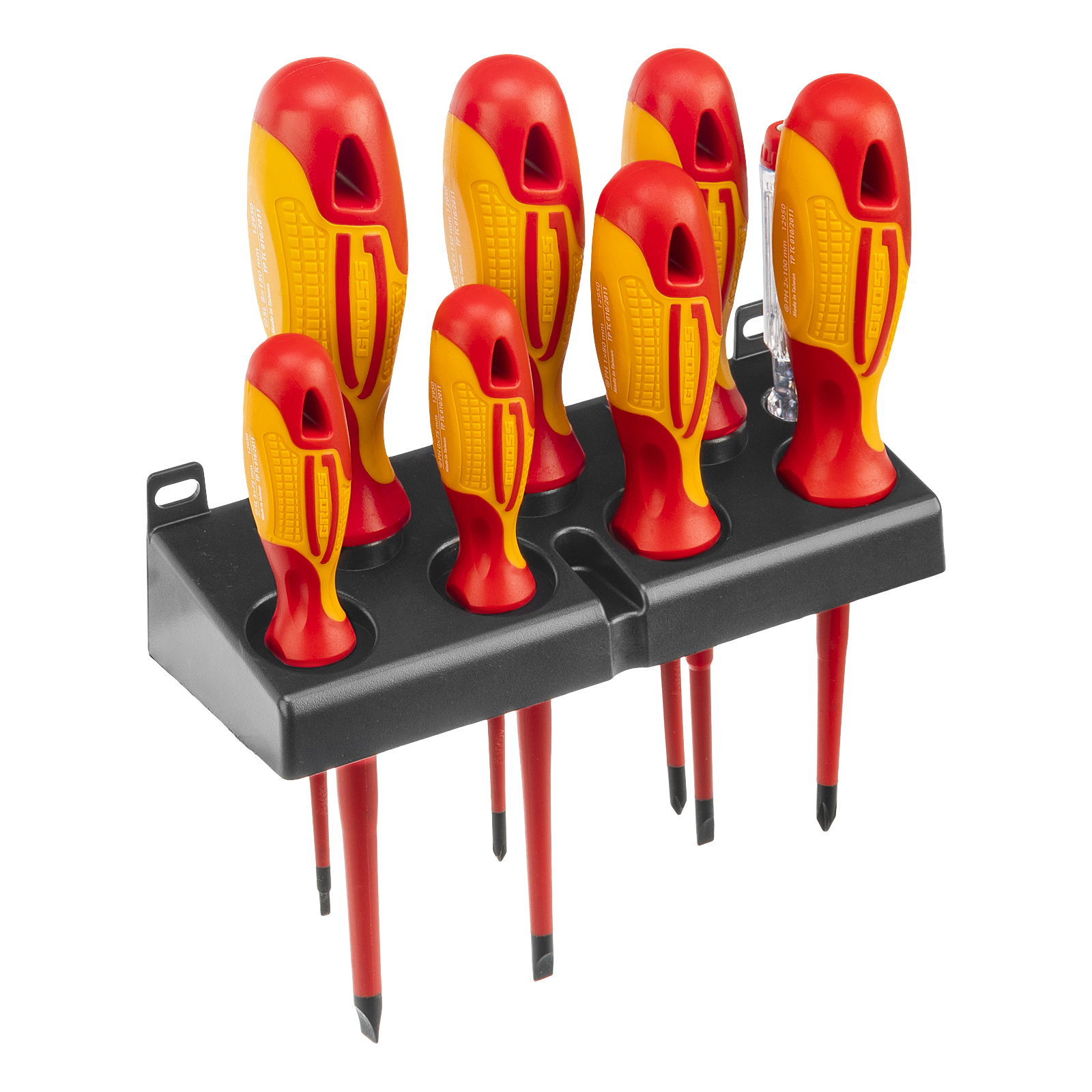 Набор отверток диэлектрических до 1000 В, 8 шт, тестер, CrMo, двухкомпонентные рукоятки Gross в Москве