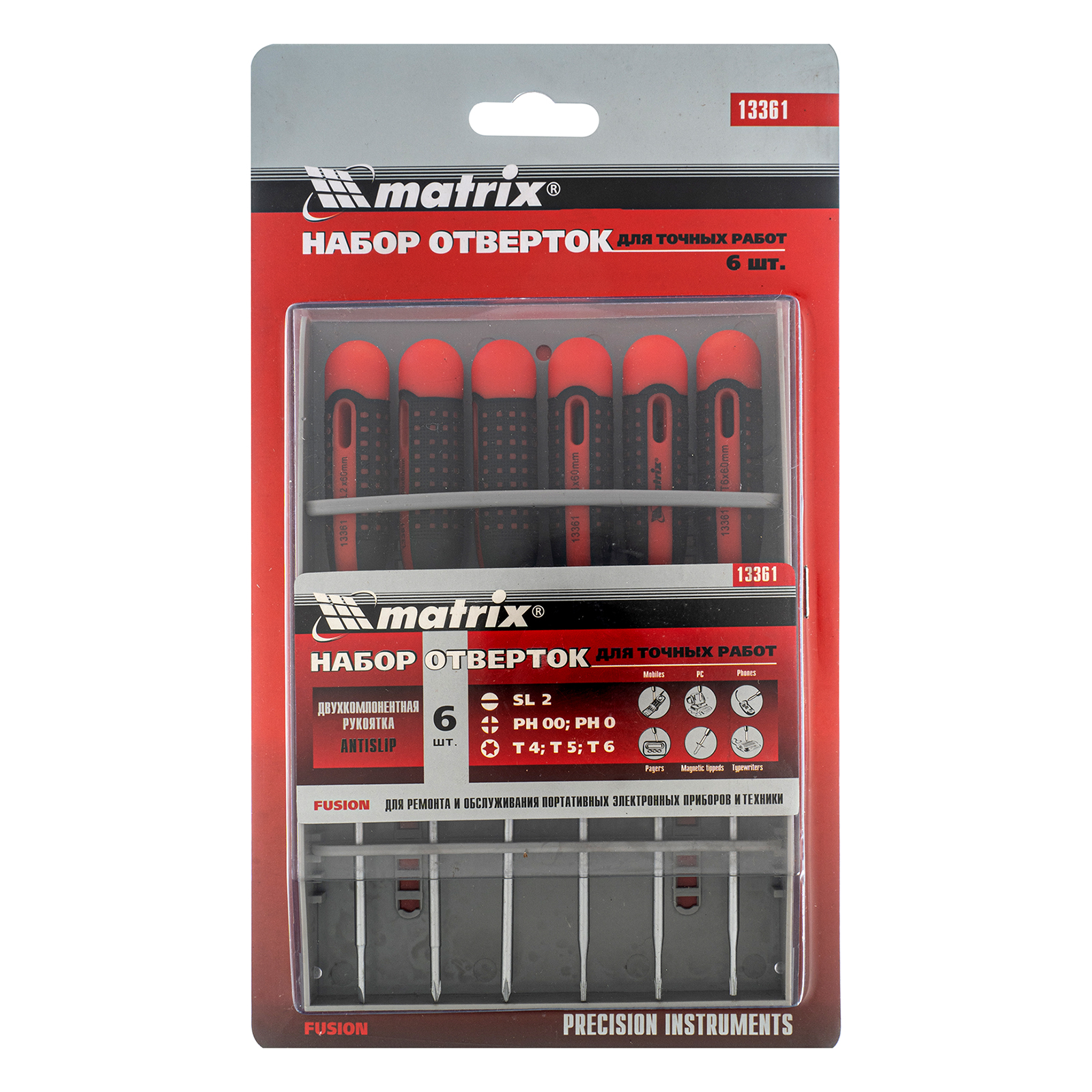 Набор отверток для точных работ Fusion, двухкомпонентная рукоятка, 6 шт, в пластиковом пенале Matrix в Москве