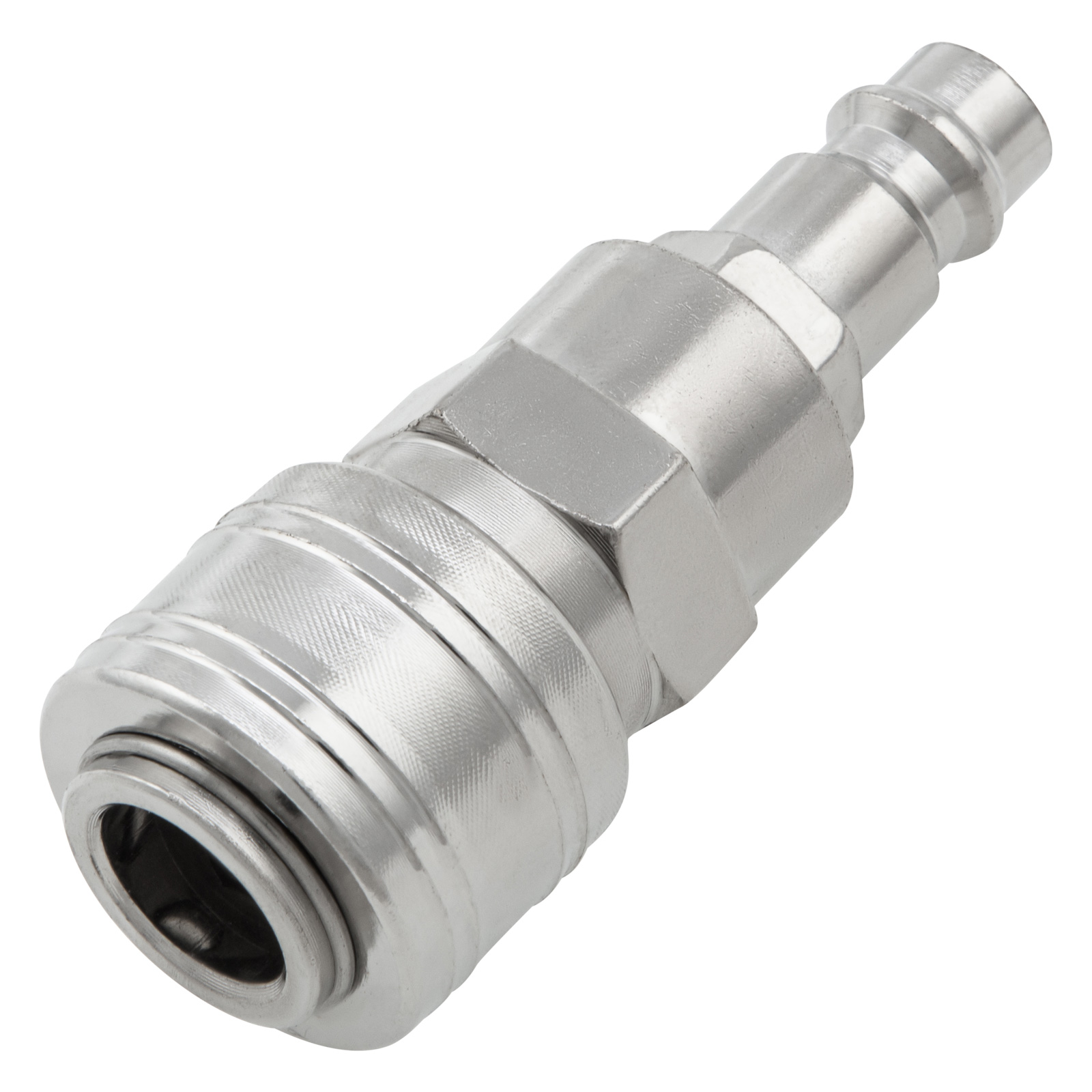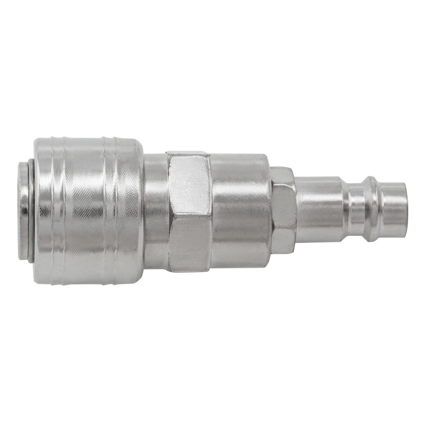 Набор переходников Matrix 57016 обеспечивает подключение элементов пневмосистемы с разным типом крепления. Он позволяет просто перейти с быстросъемного соединения на резьбовое и надежно соединить компрессор с пневматическим инструментом. Набор состоит из двух аксессуаров: ниппеля Rapid (Euro) типа «папа» и муфты Rapid (Euro) типа «мама» с диаметром внутренней резьбы 1/4″.