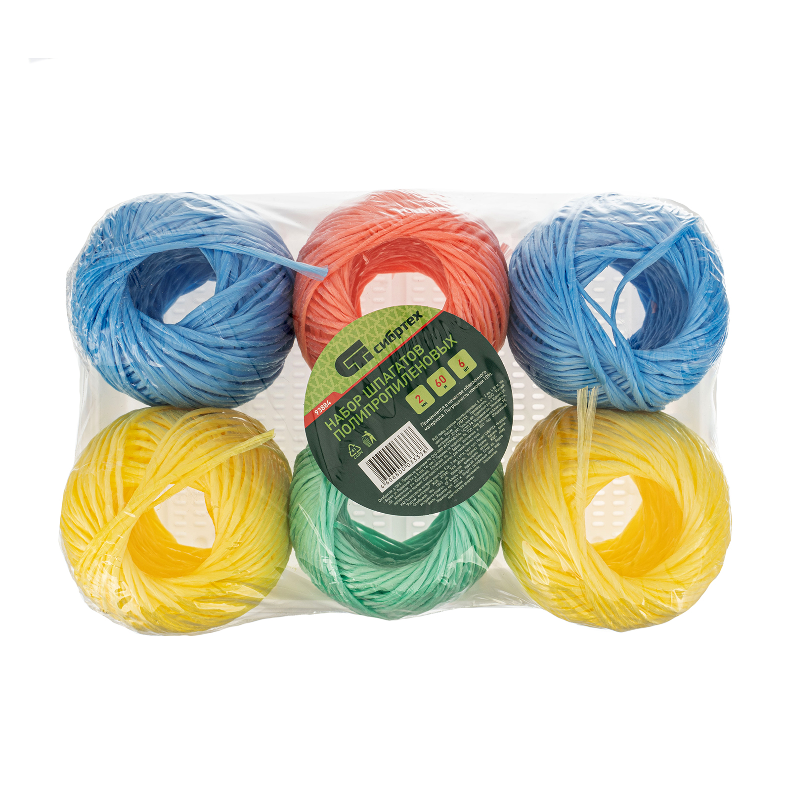 Набор шпагатов полипропиленовых, 6 шт, 2 мм, L 60 м, MIX цветов, Сибртех в Москве