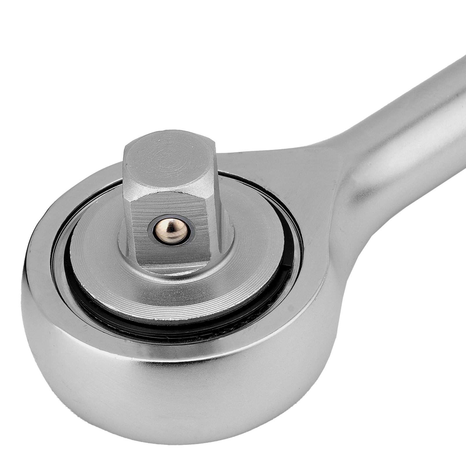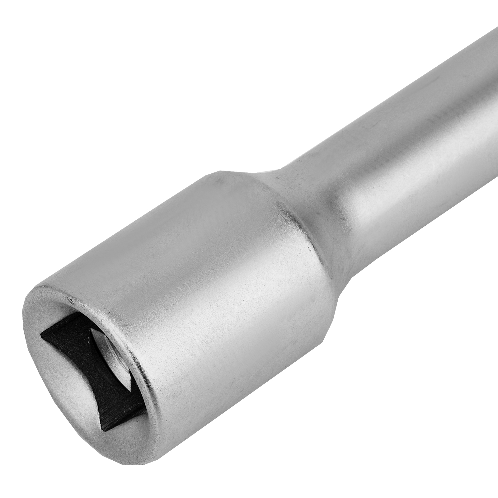 - Удобная работа в труднодоступных местах — в комплект поставки входит трещоточный ключ, вороток и удлинители 100 и 200 мм.