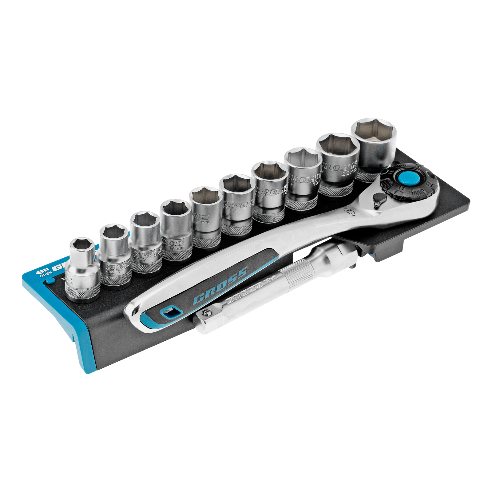 Набор торцевых головок, трещотка 120 зубьев, 1/2", CrV, 12 предметов Gross в Москве