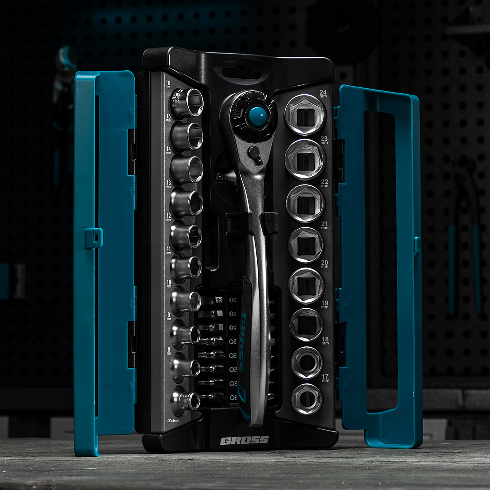 Набор торцевых головок, трещотка 120 зубьев, 1/2", CrV, 36 предметов Gross в Москве