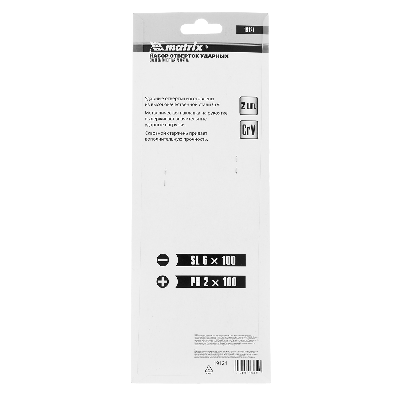 Набор ударных отверток 2 шт, PH2 х 100, SL6 х 100 CrV Matrix в Москве