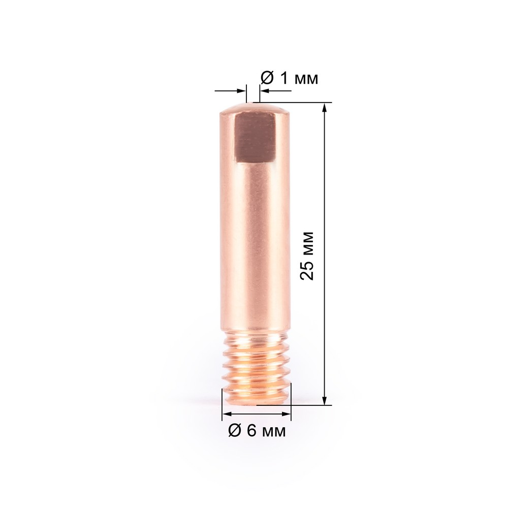 Стандартный сварочный наконечник с резьбой М6 для проволоки диаметром 1,0 мм. Выполнен из меди.