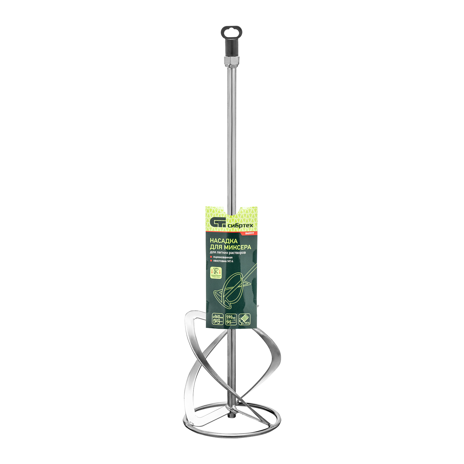 Насадка для миксера, для легких растворов, 160 х 590 мм, оцинкованная, хвостовик резьба М14 Сибртех в Москве