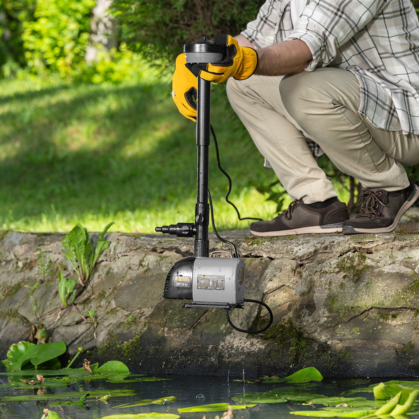 Фонтанный насос Denzel FNP110-34 99032 мощностью 112 Вт, с насадками колокольчик/каскад/гейзер, перекачивает 3400 л воды в час и обеспечивает максимальную высоту подъема 3,4 м. Позволяет создать декоративный фонтан, украсив водоем и оживив ландшафт дачного участка. Установив одну из входящих в комплект насадок, можно получить наиболее подходящий тип струи: в виде колокольчика, каскада или гейзера. Также в конструкции насоса предусмотрен специальный патрубок для создания водопада.