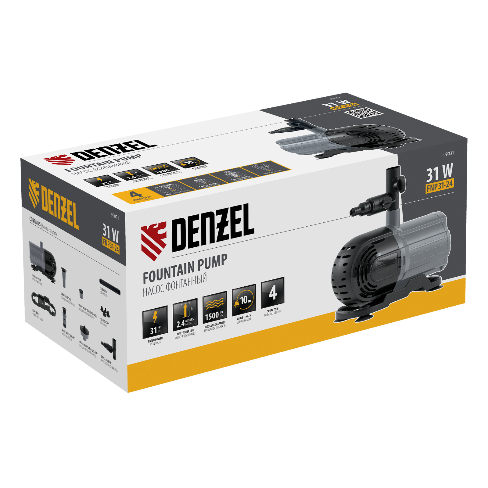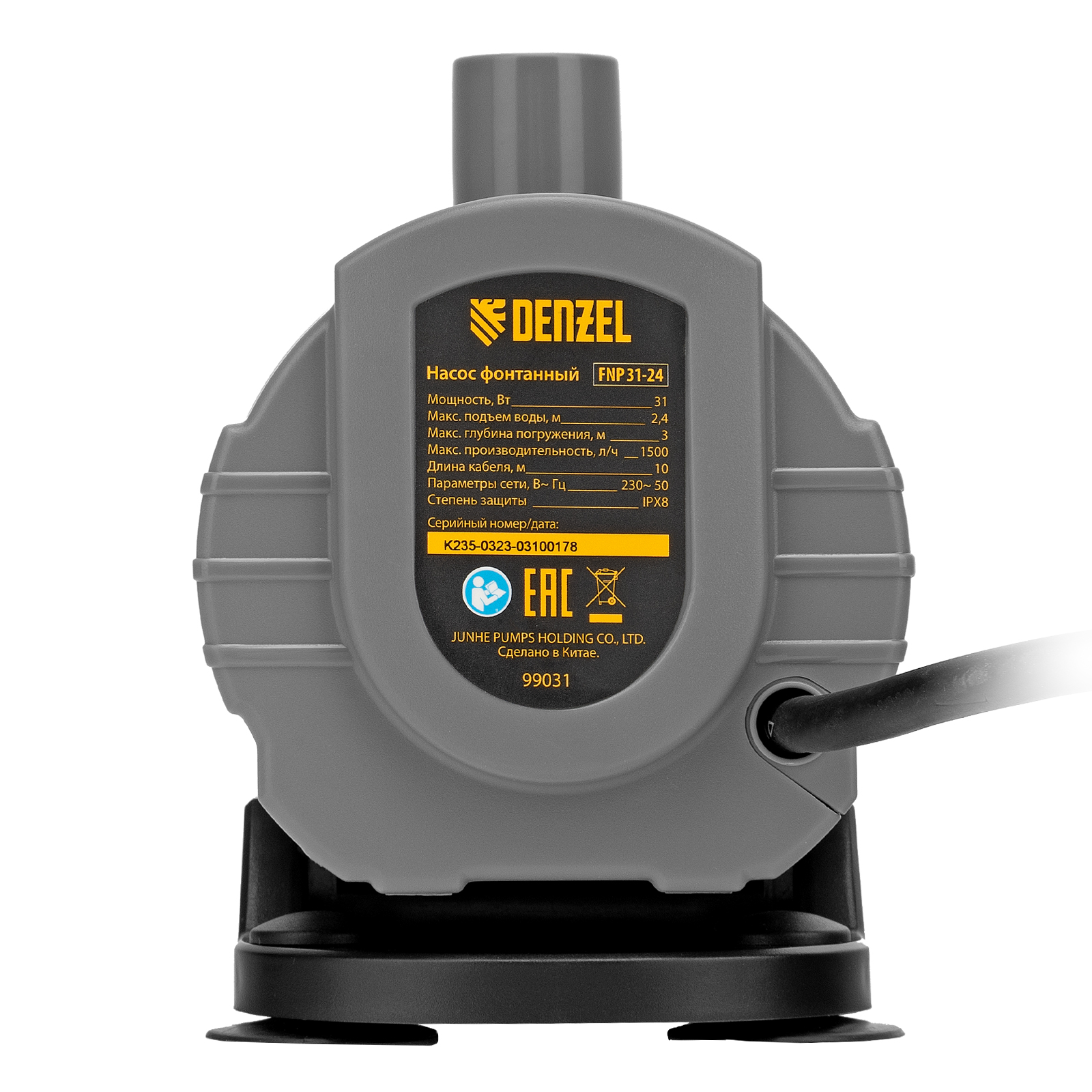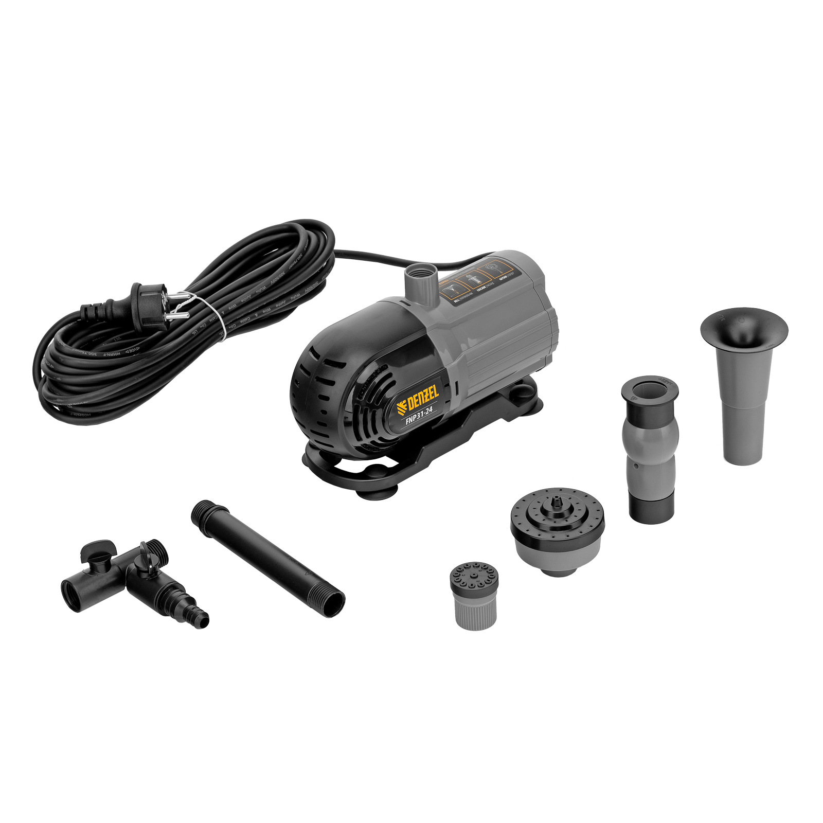 Насос фонтанный FNP31-24, 31 Вт, подъем 2,4 м, 1500 л/ч, колокольчик/2 каскада/гейзер Denzel в Москве