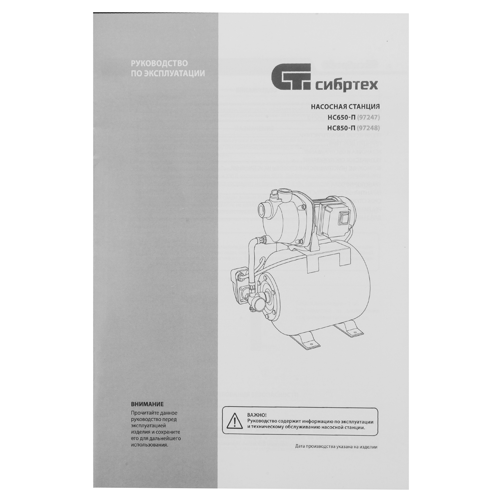 Насосная станция НС650-П, 650 Вт, напор 37 м, 3200 л/ч, ресивер 19 л Сибртех в Москве