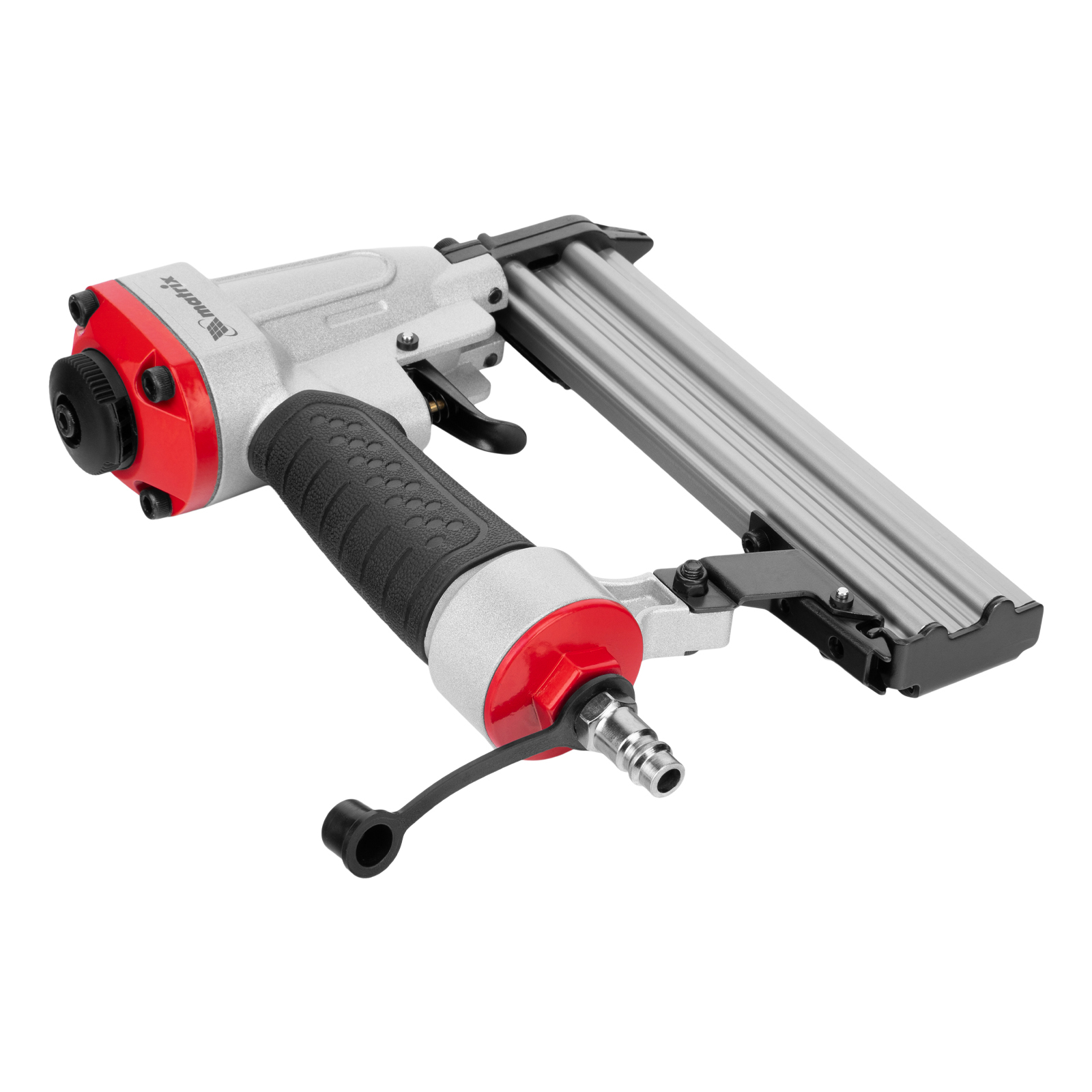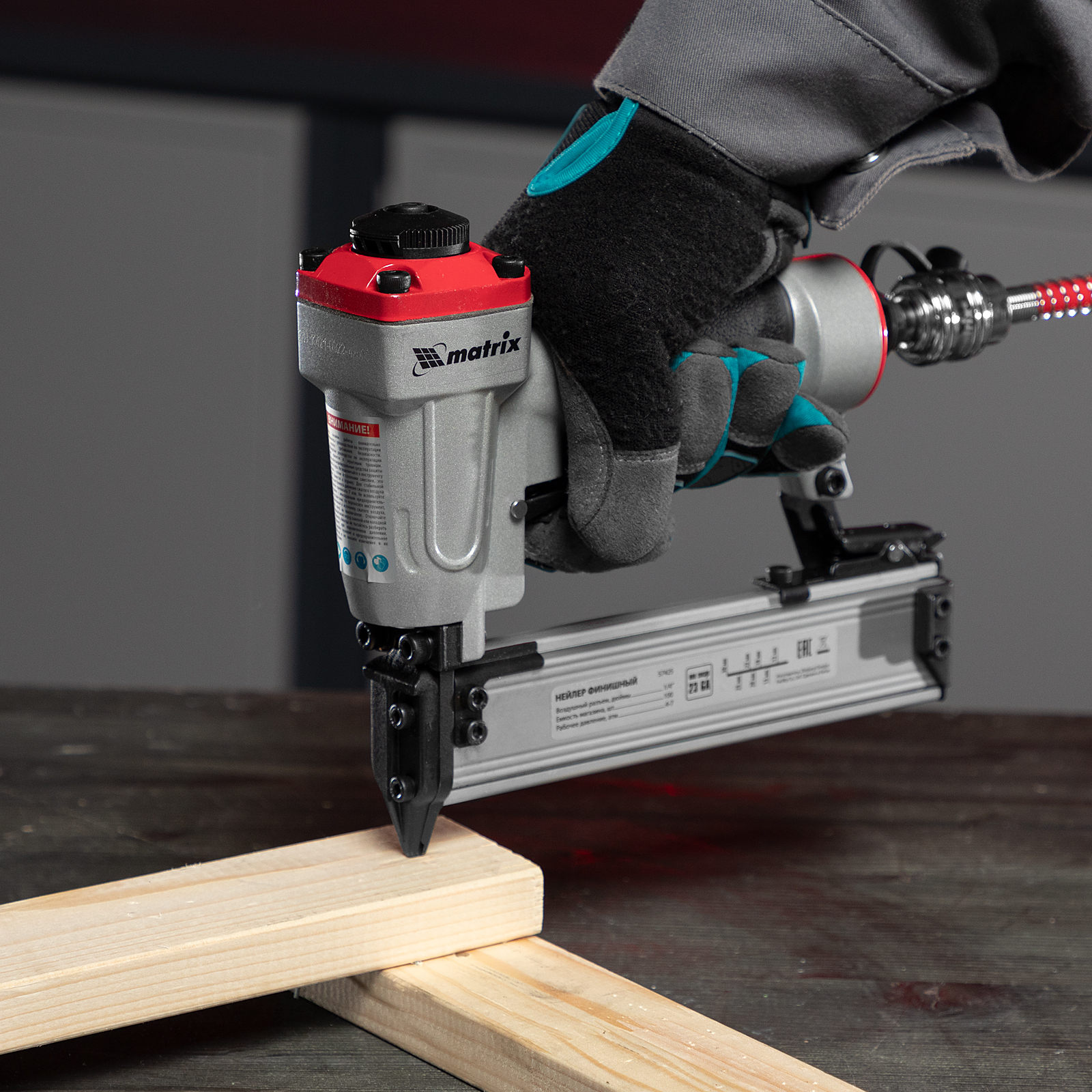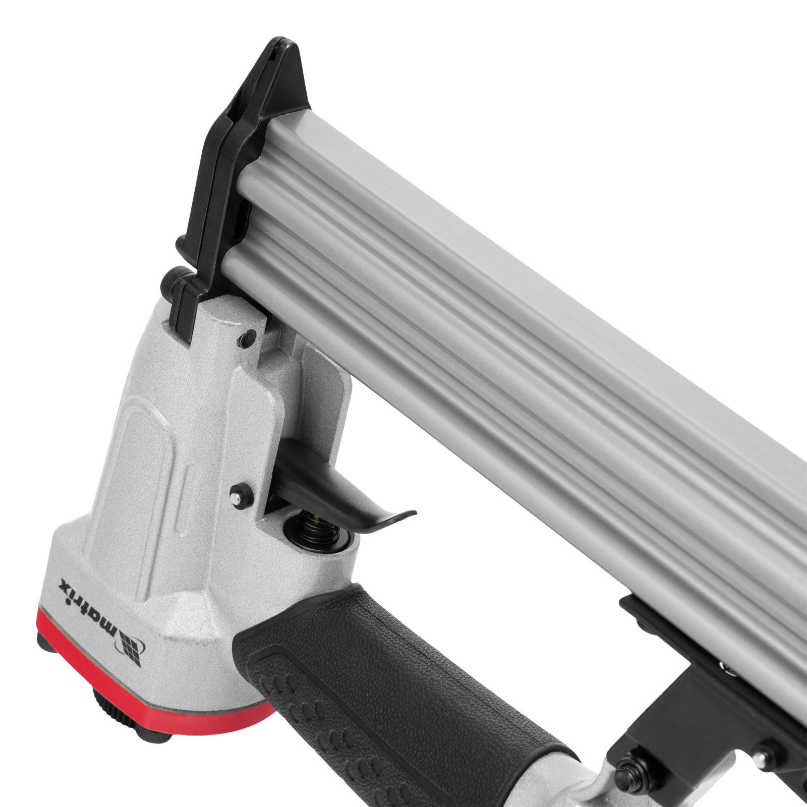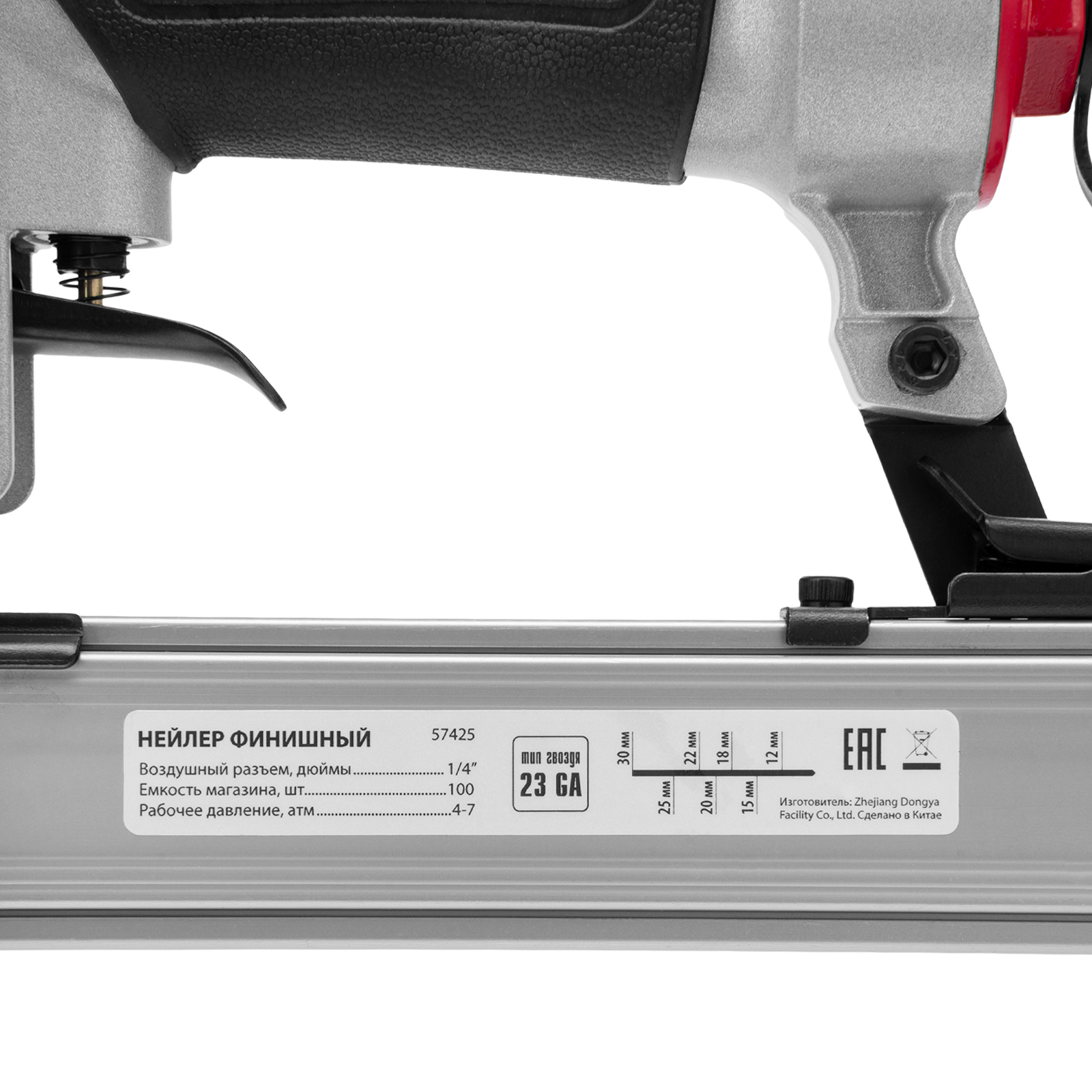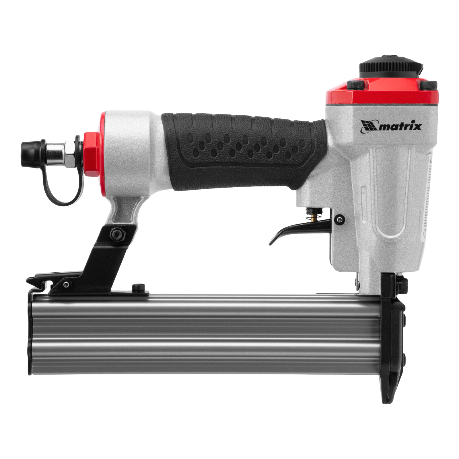 Пневматический финишный нейлер Matrix 57425 (шпилькозабивной пистолет) предназначен для забивания гвоздей 23GA диаметром 0,64 мм и длиной 10-30 мм. Он используется для финишной отделки, а также сборки мебели и производства упаковки. Благодаря низкому расходу воздуха 0,7 л/мин нейлер совместим с любым типом компрессоров.